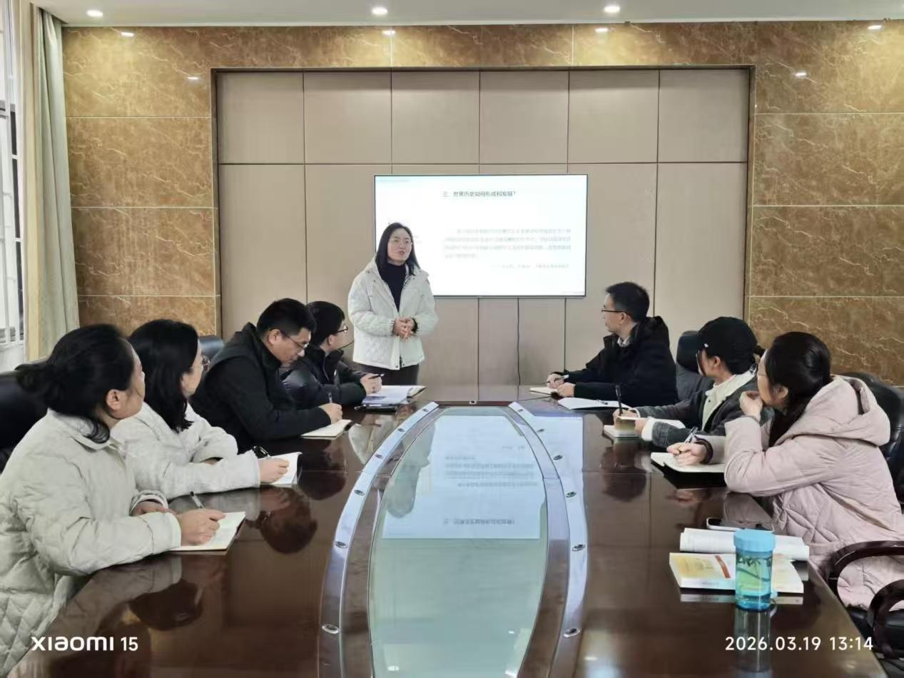 此次备课会紧扣“以赛促教、赛教融合”的主题,旨在通过教学展示与深度研讨,促进教师间互学互鉴。会议共分为两个阶段:第一阶段为教学展示环节。青年教师刘璐璐在第一阶段进行了教学展示,她围绕“生产力与生产关系的矛盾运动”“世界历史理论”两大课程内容主题,进行了精彩的教学展示。她系统阐述了教学内容的设计思路、逻辑框架与教学方法,展现了扎实的理论功底和清晰的教学设计。第二阶段为集中研讨与点评环节。与会教师结合教学竞赛的标准与要求,对展示内容进行了深入、细致的评议。大家一致认为,刘璐璐老师的展示选题精准、内容充实、教态自然,充分展现了青年教师良好的专业素养与教学风采。同时,为进一步提升教学展示的竞赛水准与日常课堂的育人效果,与会教师展开了热烈讨论,并形成了三大优化共识:其一,精心设计课程导入。导入环节要兼具吸引力与启发性,应快速聚焦核心问题,自然引出教学内容,有效激发学生探究兴趣。其二,着力提升教学艺术。注重课堂节奏与教学“留白”,精讲的同时启迪学生主动思考、消化知识,实现讲授与互动的张弛有度。其三,深化理论联系实际。课程内容应贴近学生生活与认知水平,引导学生活学活用原理知识。