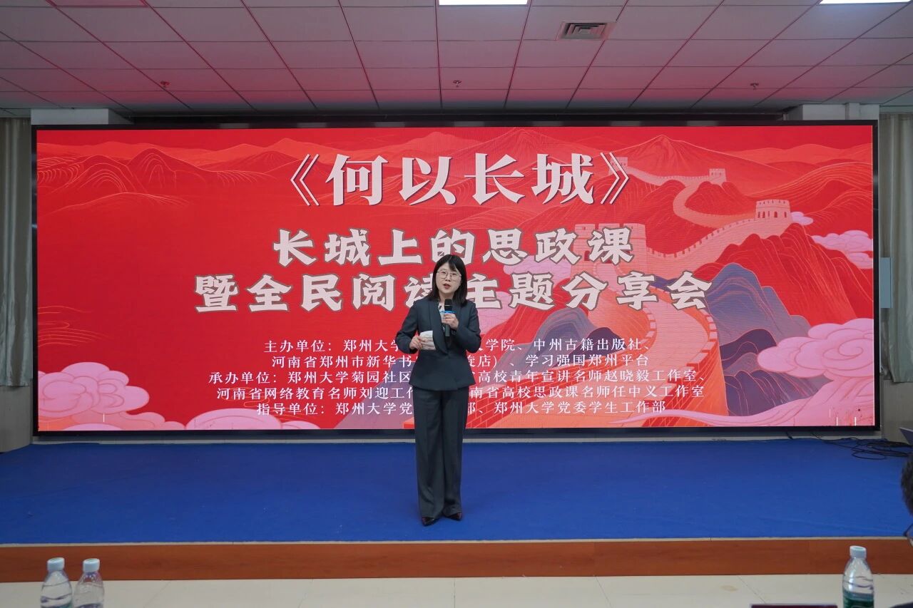 为深入践行习近平总书记关于“推进全民阅读,建设书香社会”的重要指示精神,推进思政教育创新发展,厚植青年学子家国情怀,传承中华优秀传统文化,4月16日,“何以长城——长城上的思政课暨全民阅读主题分享会”在郑州大学中心体育馆东配馆报告厅举办。活动由郑州大学马克思主义学院、中州古籍出版社、河南省新华书店(凯旋店)、“学习强国”郑州平台、郑州大学菊园社区联合主办,多家单位共同承办。中国长城文化研究中心主任、《何以长城》作者董耀会,郑州大学马克思主义学院院长刘吕红,郑州大学党委常委、宣传部部长、新闻中心主任、出版社总编辑孙保营,郑州大学党委学生工作部部长、学生处处长冀娟及党委宣传部、党委学工部、马克思主义学院相关同志和师生代表出席活动。马克思主义学院副教授赵晓毅主持活动。