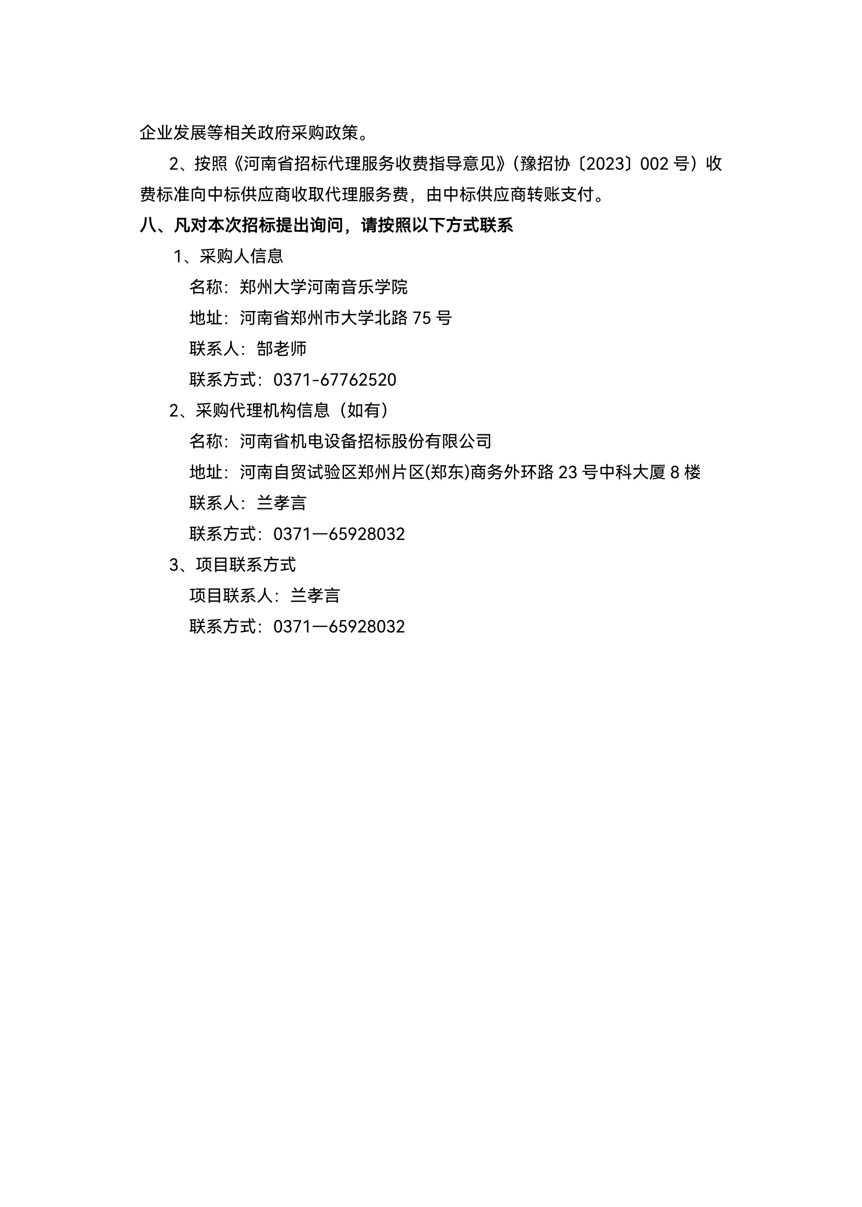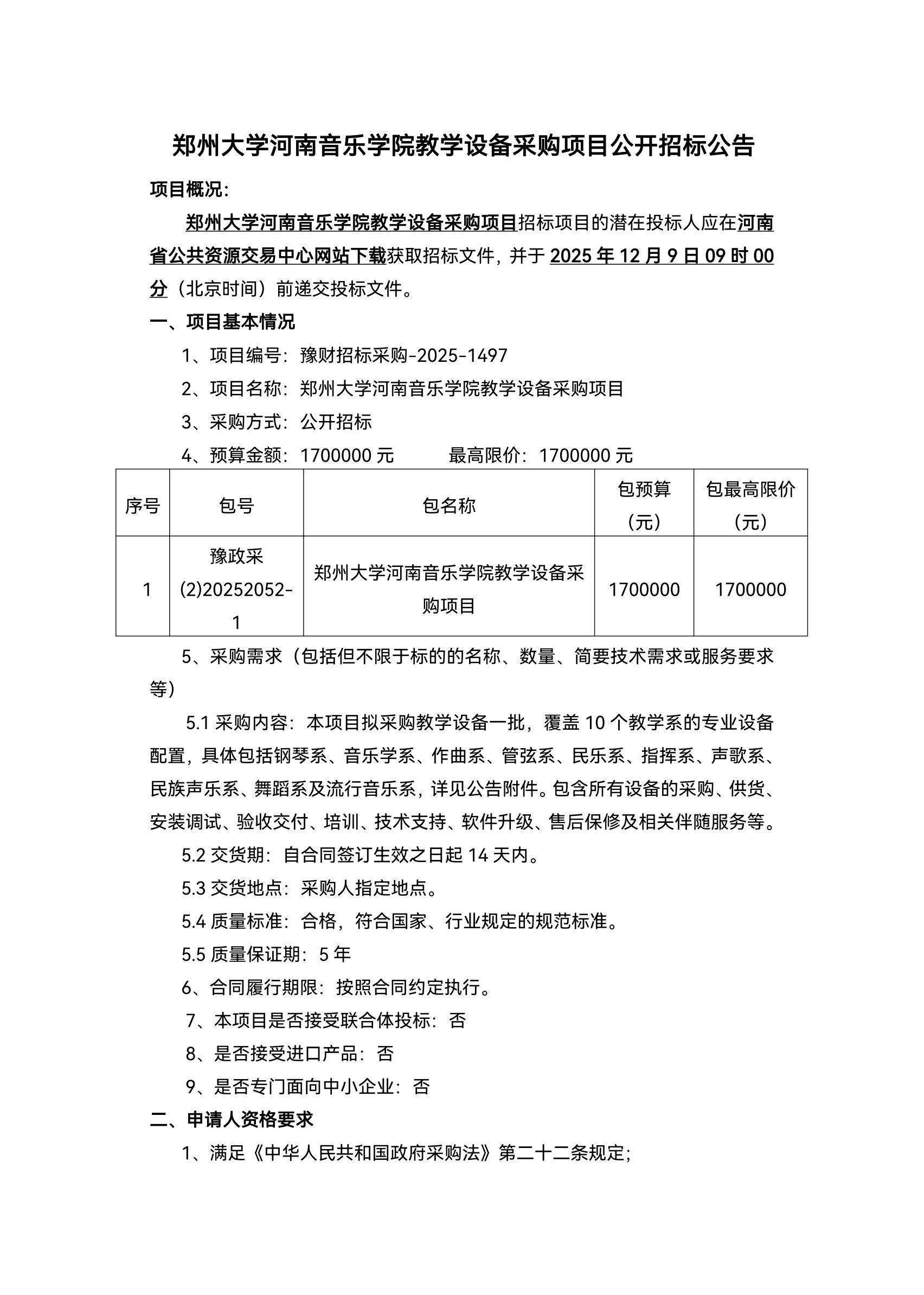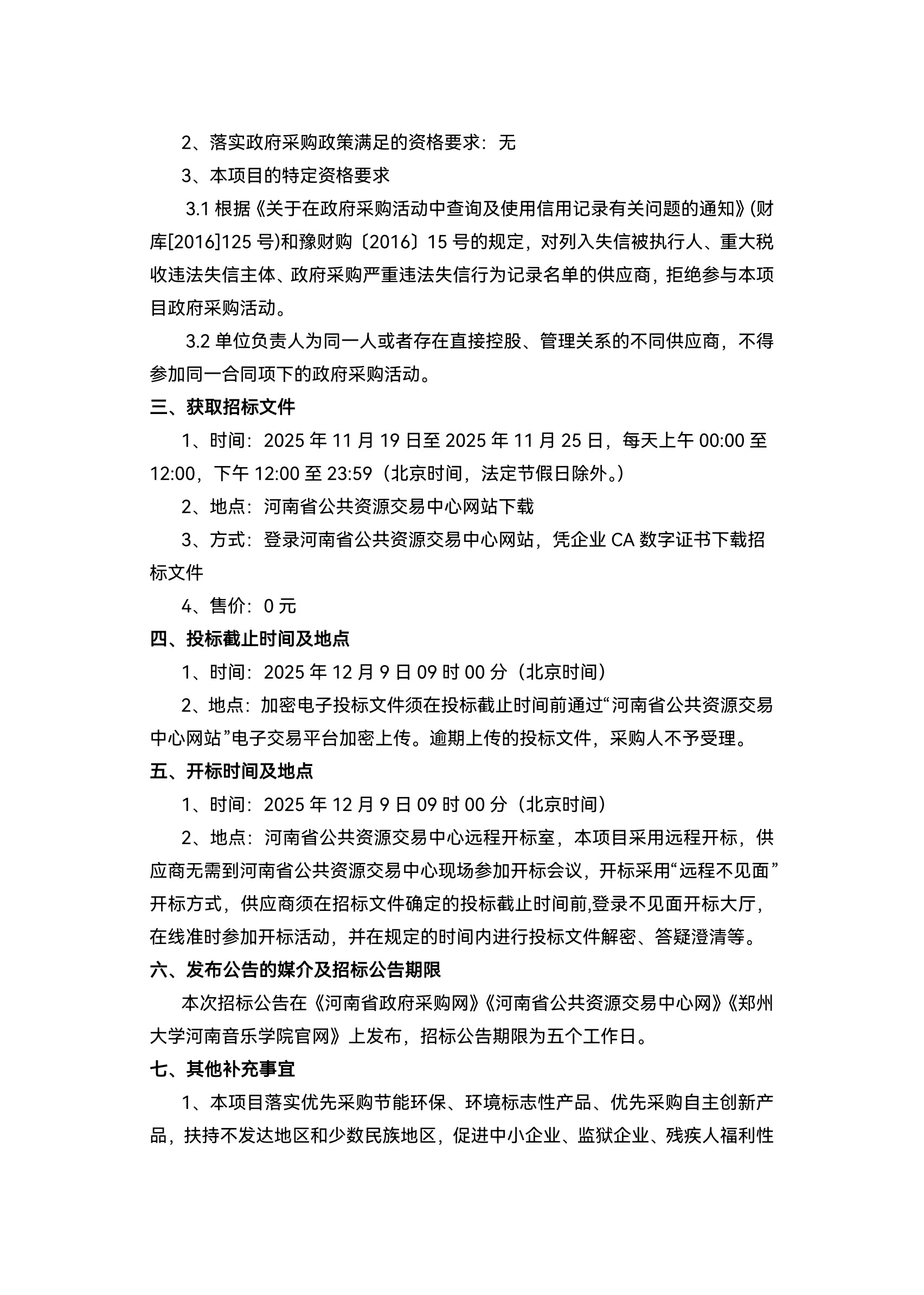 郑州大学河南音乐学院教学设备采购项目公开招标公告