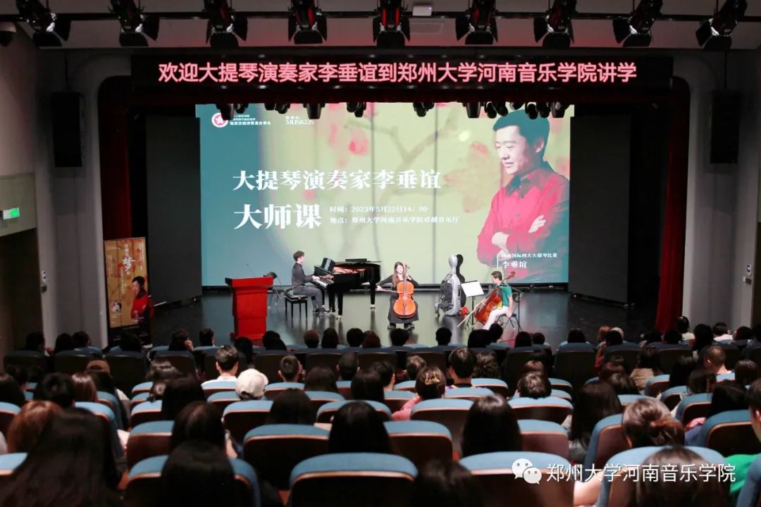 2023年5月22日14时,著名华裔大提琴演奏家李垂谊先生应邀来到郑州大学河南音乐学院卓越音乐厅,举办了一场精彩的大师课。当日现场座无虚席,学习气氛热烈。