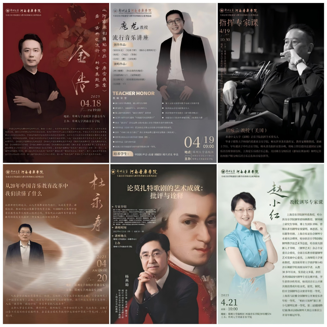 4月18日—21日,金浩教授、庞龙教授、胡咏言教授、杜永寿教授、杨燕迪教授、赵小红教授分别在郑州大学河南音乐学院开展专家课、主题讲座等,与学院师生进行了深入的学术交流与互动。
