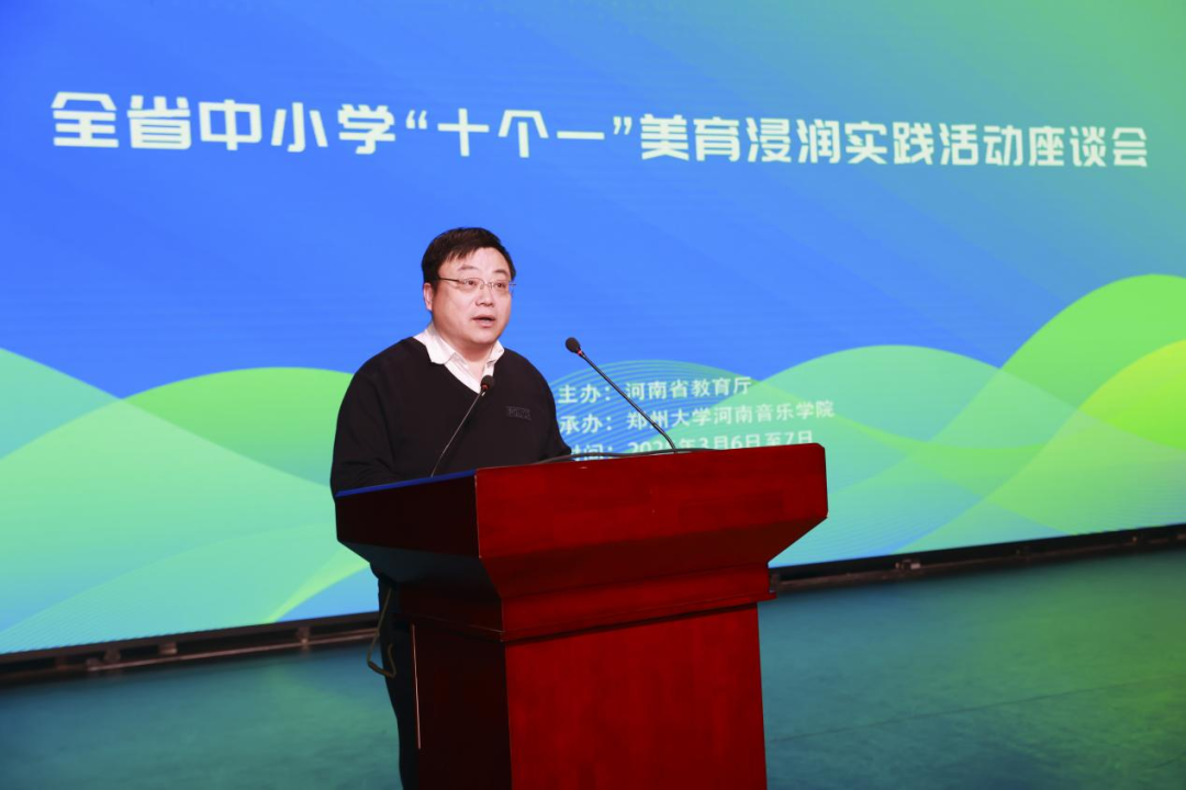 3月7日,全省中小学“十个一”美育浸润实践活动座谈会在郑州大学河南音乐学院隆重举行。本次座谈会由河南省教育厅主办,郑州大学河南音乐学院承办,旨在深入贯彻党中央、国务院及省委、省政府的决策部署,总结2024年度学校美育工作经验,规划2025年中小学‘十个一’美育浸润实践活动,并传达首届全国中小学美育教学指导专业委员会交流会议精神,以期推动全省中小学美育工作取得实质性进展和显著成效。