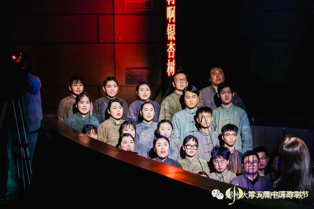 5月11日、12日,学院70余名学生参演原创民族歌剧《银杏树下》亮相第五届中国歌剧节的舞 台。 此次是郑州大学河南音乐学院与河南省歌舞演艺集团打造校外实践教育基地以来的第一次深度合作。