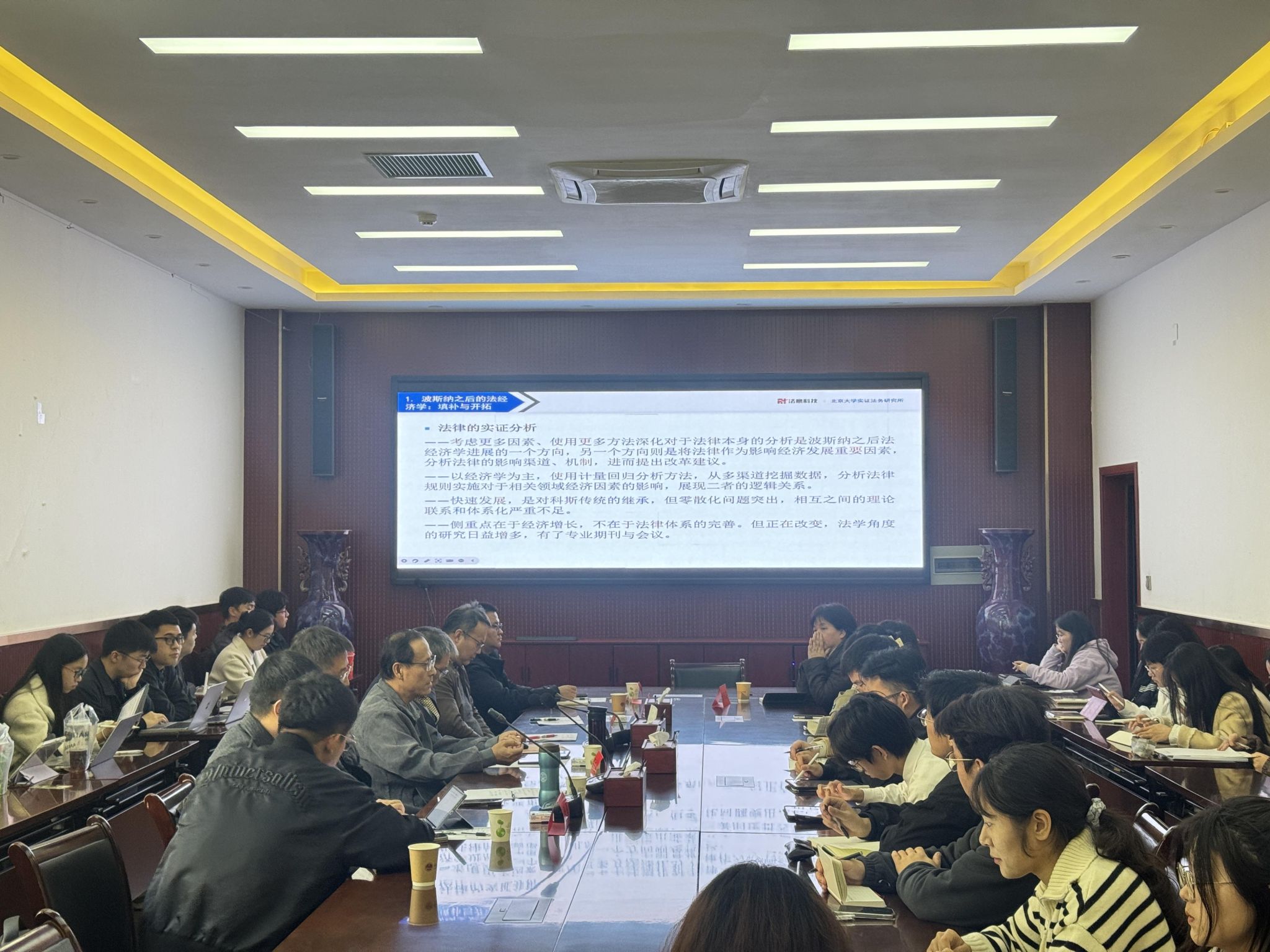 10月27日下午15:00—18:00,山东大学二级教授、博士生导师、《山东大学学报(哲社版)》主编魏建教授应邀为我院师生做题为《法经济学:过去、现在与未来》的专题讲座。讲座由我院王建国教授主持,李建新、晁育虎、周恒与谈,法理学和法制史方向50余人参加,现场气氛热烈。