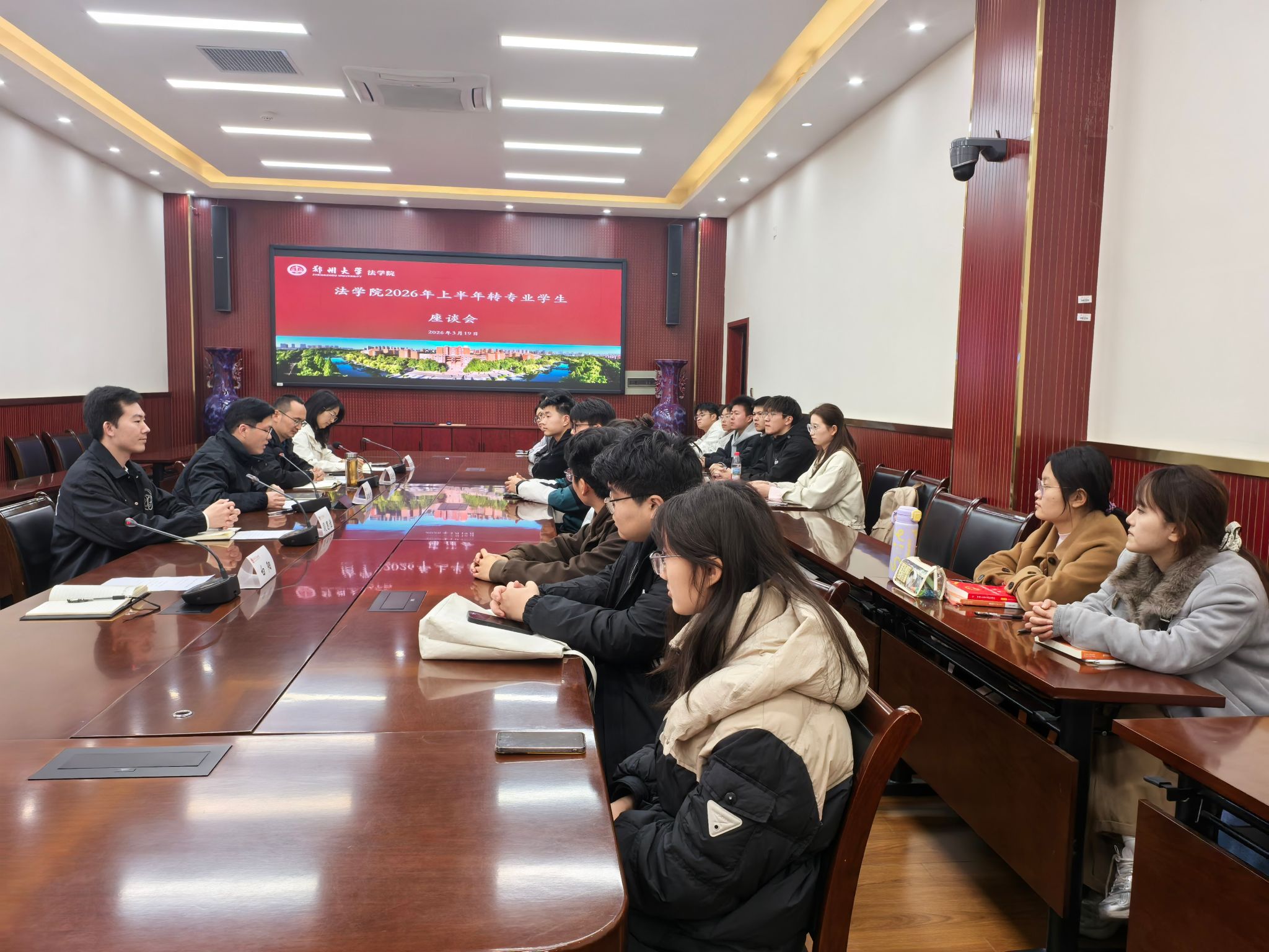 3月19日,为帮助转专业学生尽快了解和适应法学专业学习,明确发展目标,法学院组织召开了2026年上半年转专业学生座谈会。法学院党委副书记郭鹏杰,法学院副院长王圭宇,法学院知识产权教研室主任、2025级涉外法治人才实验班班主任郭雨洒,法学院团委书记段思佳出席会议。全体新转入法学专业的学生参加会议。