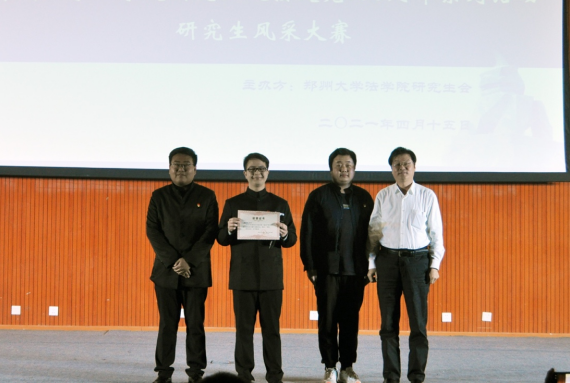 2020级法律硕士(法学)研究生马骋、张睿的爵士舞串烧节目、2020级法律硕士(非法学)研究生屈文晨的说唱歌曲《华夏》、2020级法律硕士(法学)研究生刘悦、刘丰铭、卢艺伟的曲艺展示节目《知否》获得三等奖。与会教师分别为获奖节目选手颁发证书。2020级宪法学与行政法学硕士研究生王帅铭、2020级法律硕士(法学)研究生马伟纪、刘丰铭的《不忘初心》节目获得了“最佳人气奖”。