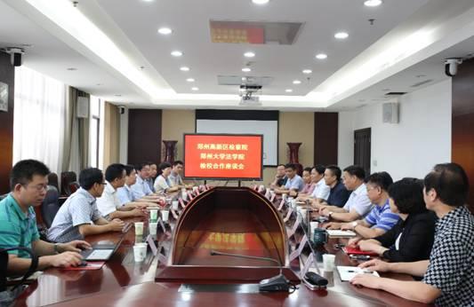 为进一步强化检校合作的广度与深度,加强我院与合作共建单位的紧密联系,提高我院社会服务水平,2015年7月16日上午,我院党政联席会成员苗连营、梁庆亚、许晓华、郑宇、陶红雅、卢少锋、王建敏、曹明睿等赴郑州市高新区检察院进行考察,举行“郑州大学法学院与高新区检察院检校合作座谈会”。高新区检察院王伟检察长、张水生副检察长、潘泽林副检察长等领导班子成员参加了座谈。
