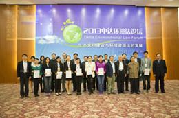随后,与会嘉宾海英俊董事长、高丹盈副校长分别为“2013中达环境法青年学者奖”获得者武汉大学柯坚副教授、中国人民大学竺效副教授颁奖;李念祖律师、马骧聪教授、安立民书记为“2013年中达环境法优秀学位论文奖”获得者北京大学王绮雁等人颁奖;最后,由蔡守秋、王树义、王曦和我校肖乾刚等教授为“2013年中达环境法学位论文奖学金”获得者代表台湾大学李佩荣、郑州大学栗楠等人颁发了证书。