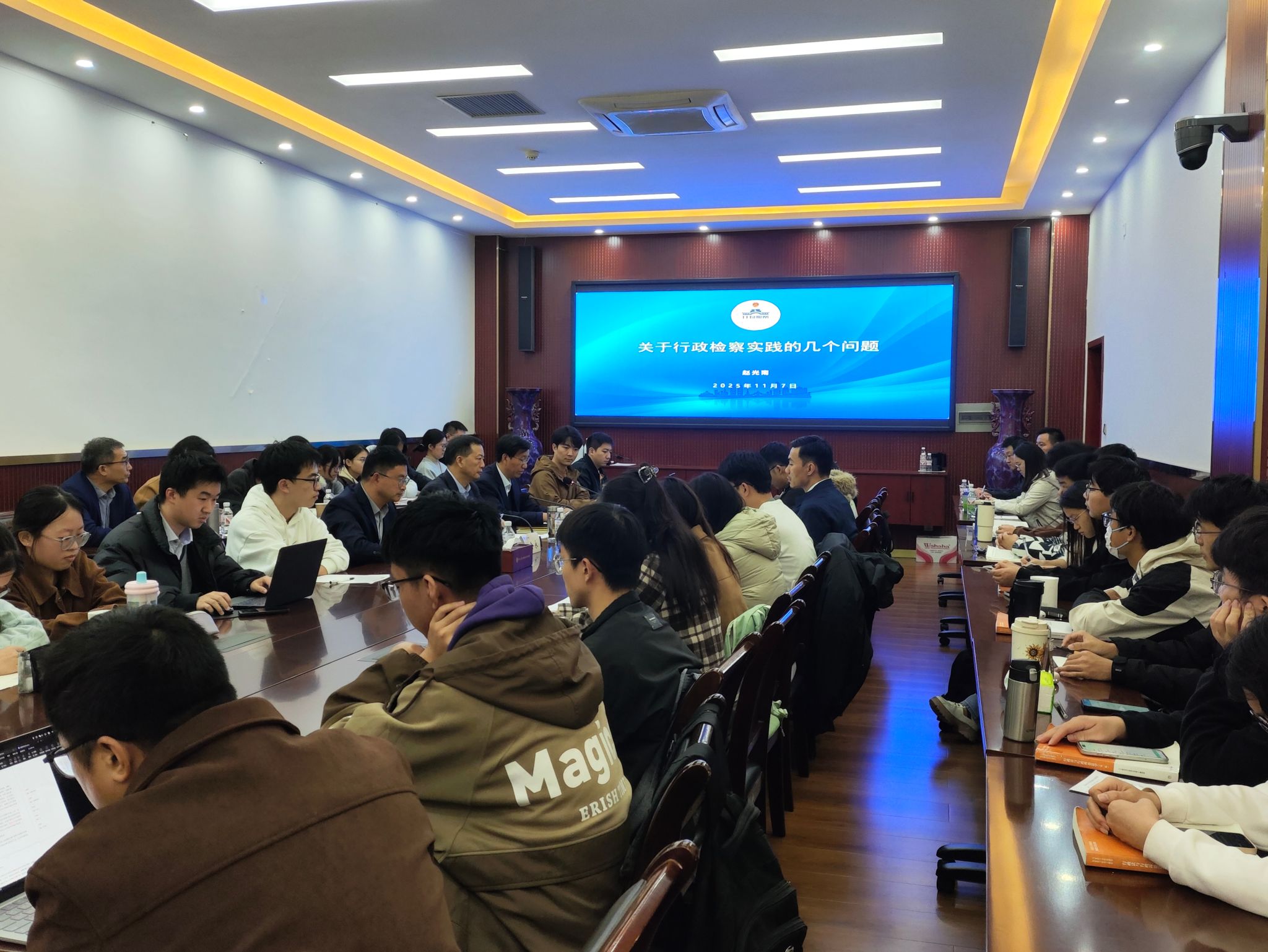11月7日15:30-18:00,开封市人民检察院党组书记、检察长,二级高级检察官赵光南应邀走进郑州大学法学院,围绕《关于行政检察实践的几个问题》以学术沙龙的形式为师生们带来了一场聚焦行政检察实践的深度分享。法学院副教授杨会永、开封市人民检察院部分同志及郑州大学法学院部分师生代表共计100余人参加了本次活动。活动由郑州大学法学院党委书记张嘉军教授主持。
