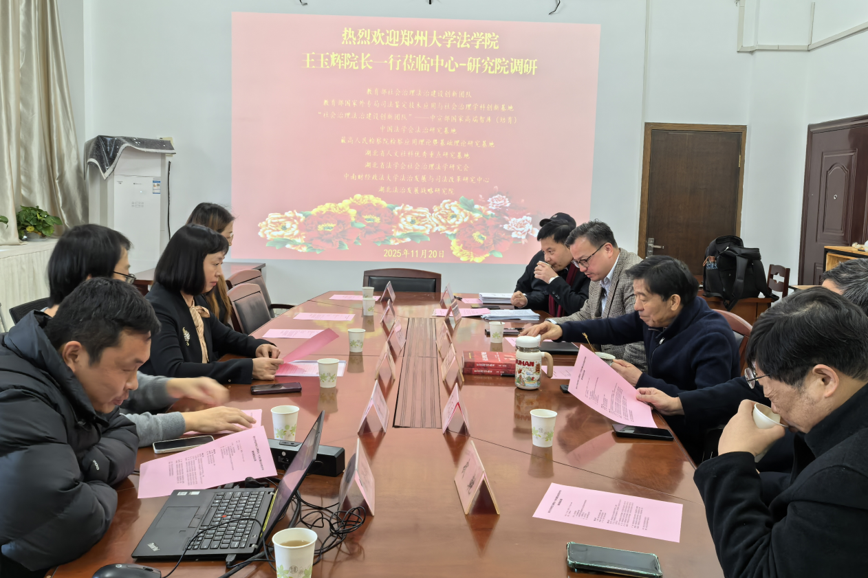11月20日,为促进郑州大学法学院与中南财经政法大学交流合作,郑州大学法学院院长王玉辉一行赴中南财经政法大学开展调研交流活动。
