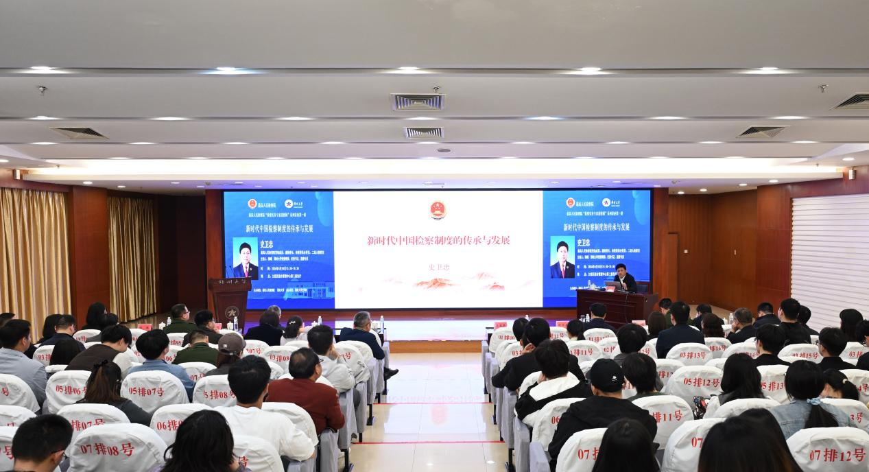 4月10日,最高人民检察院“检察实务专家进校园”走进郑州大学系列讲座第一讲在郑州大学主校区顺利举行。最高人民检察院党组成员、副检察长、二级大检察官史卫忠应邀讲授《新时代中国检察制度的传承与发展》。最高人民检察院、河南省人民检察院、郑州军事检察院相关部门负责同志;郑州大学有关校领导、郑州大学法学院师生代表共计260余人参加活动。郑州大学党委常委、纪委书记、监察专员陈曦主持授课。