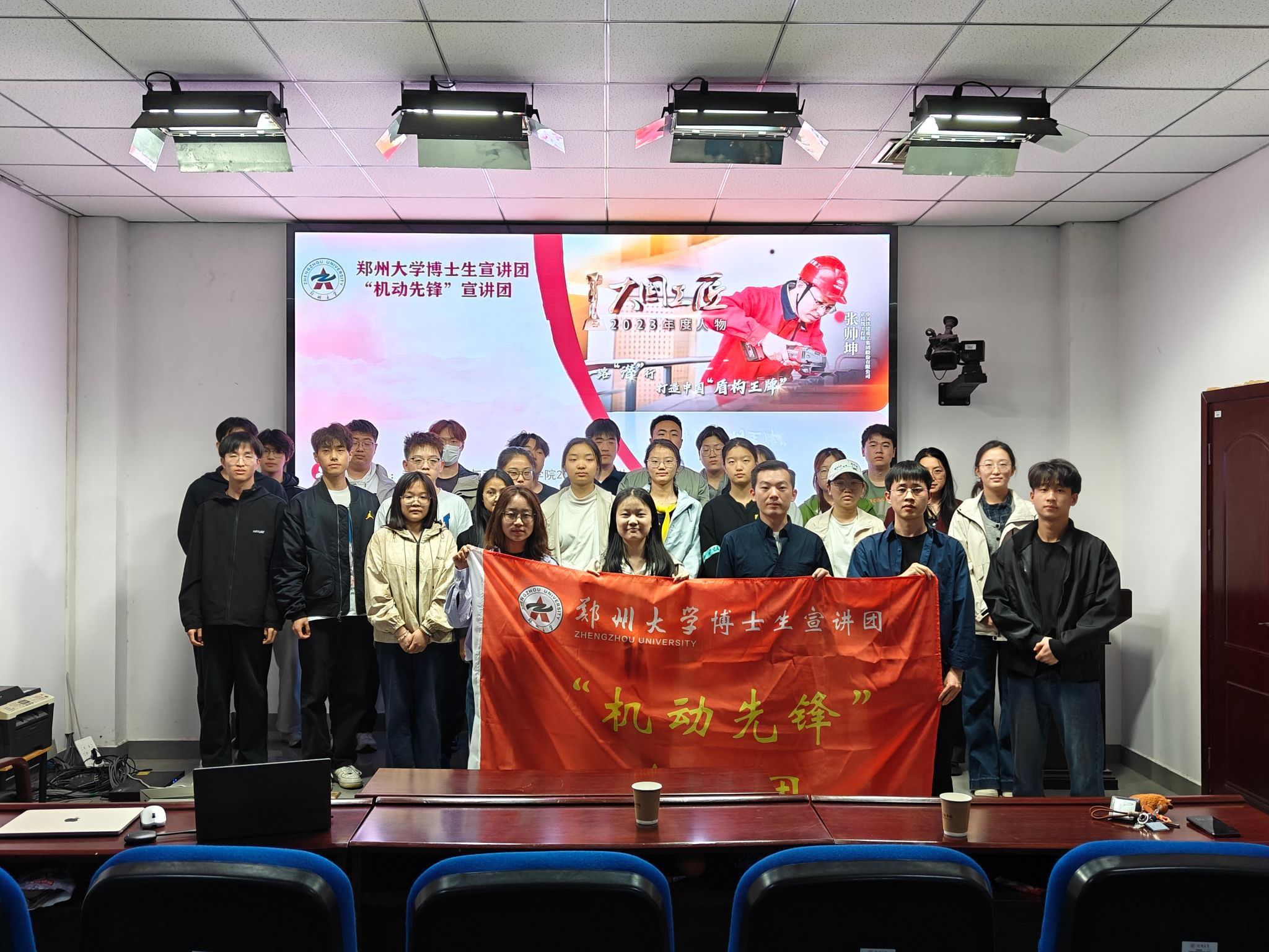 4月3日,机械与动力工程学院“机动先锋”博士生宣讲团走进我院开展“郑大骄子掘进强国路”宣讲。研究生辅导员段思佳及40余名学生参与本次活动,机械与动力工程学院赵资东同学担任主讲人。
