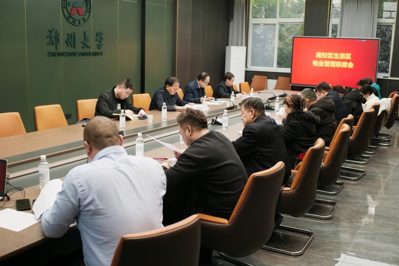 1月9日上午,南校区综合管理中心在行政楼第一会议室组织召开生活区物业管理联席会2026年会议。管理中心主任李旭东,郑大社区书记、主任王超,业主代表、河南金锐物业公司郑大项目经理、管理中心生活区管理科工作同志等参加会议。管理中心副主任梁晓军主持会议。