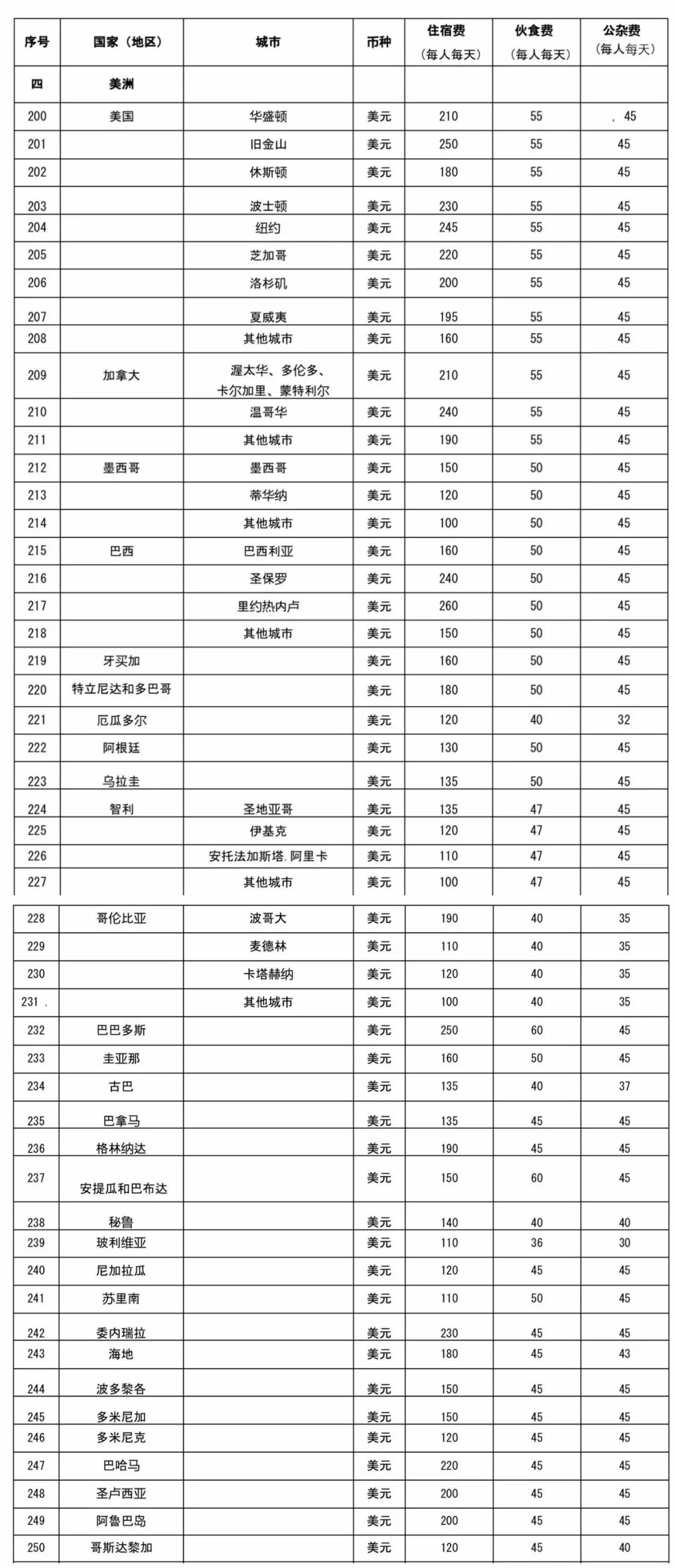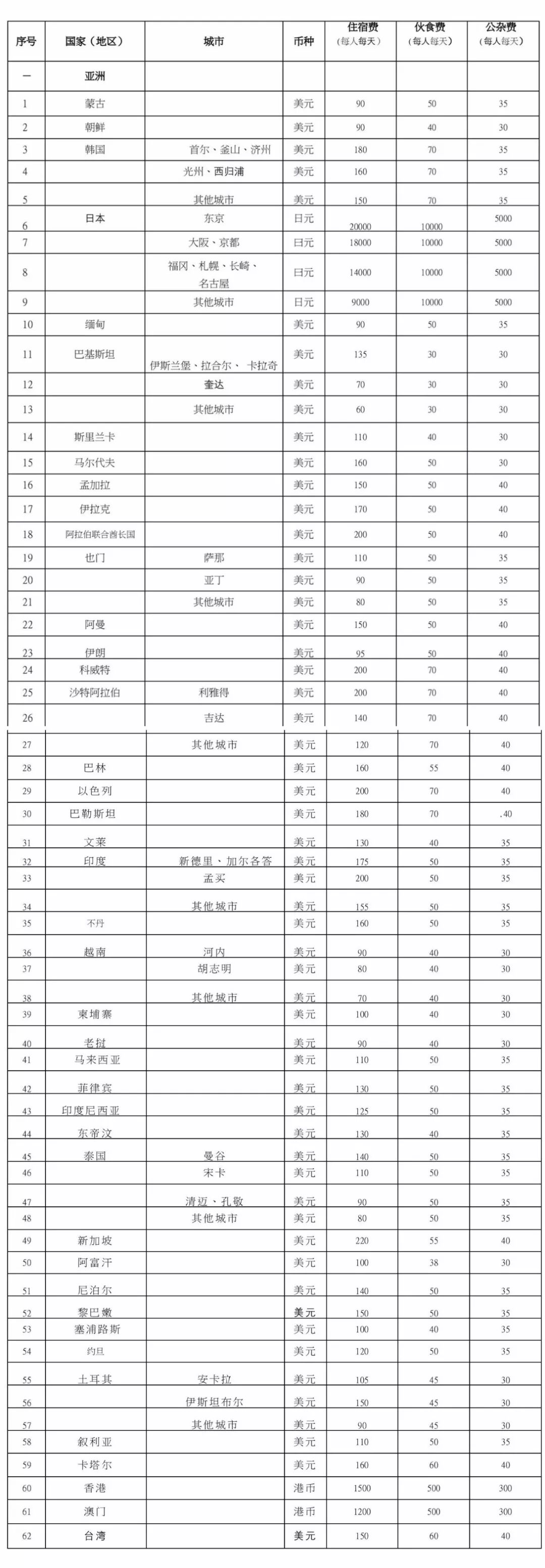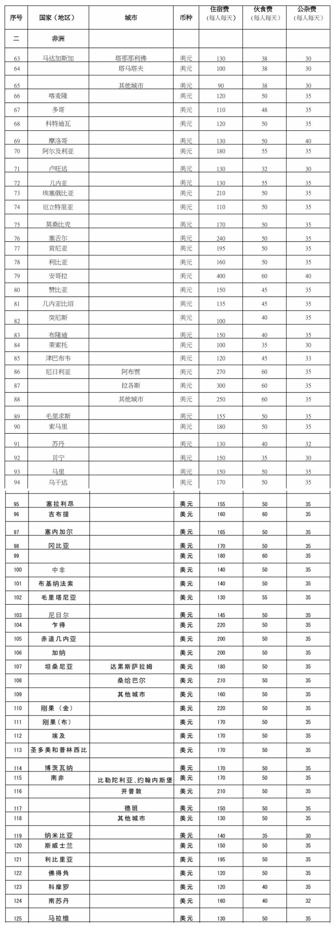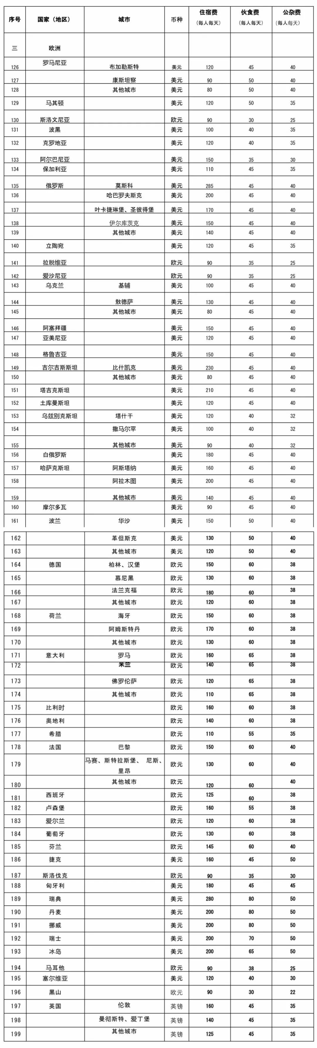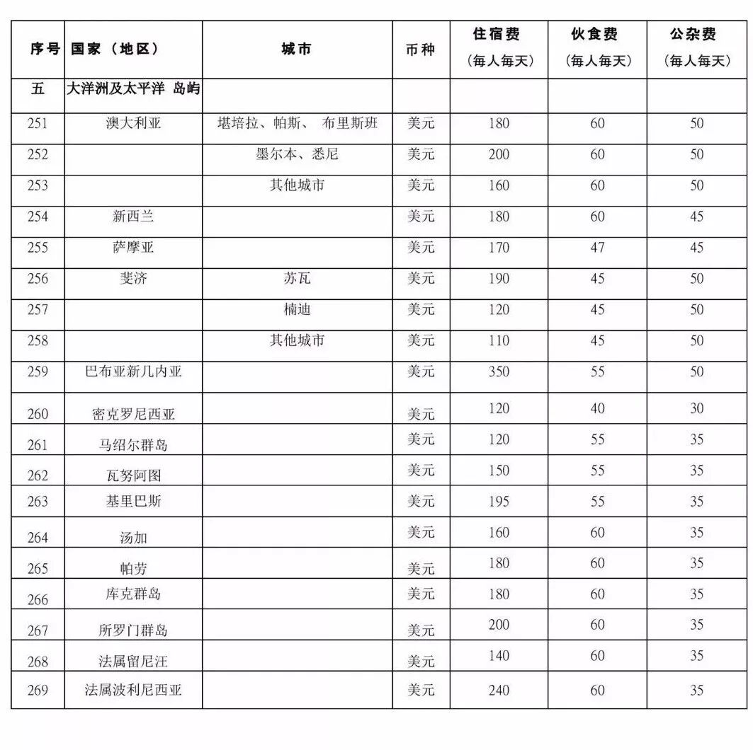 (各国家地区费用开支标准表格 见文末)