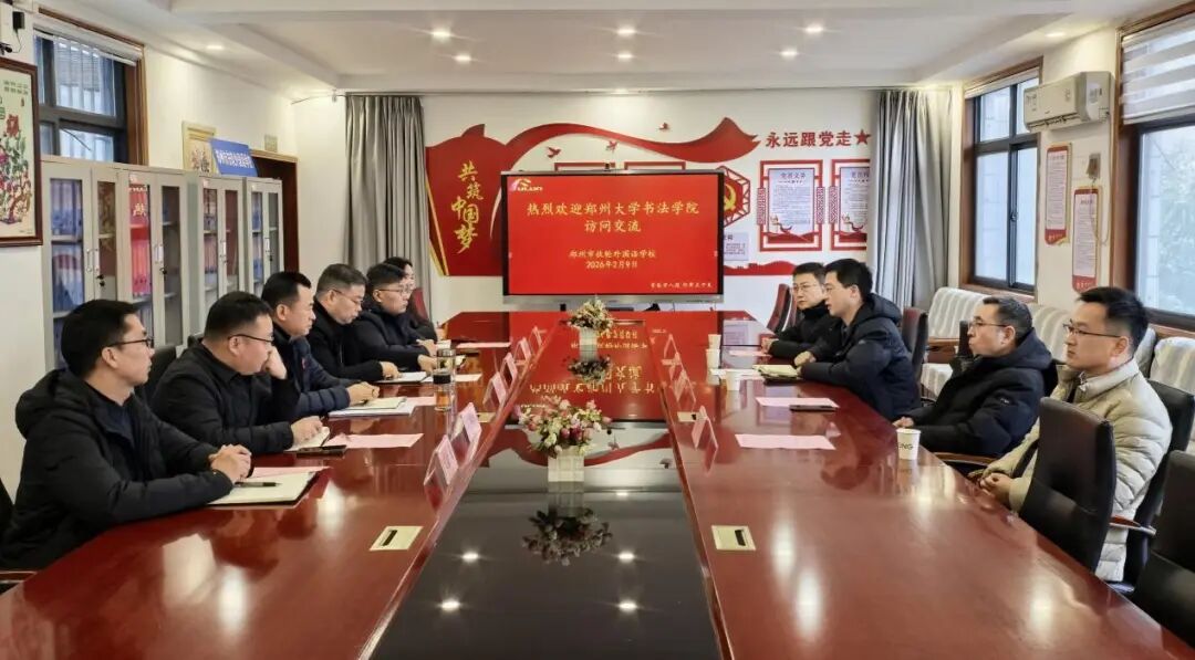 为深化校地合作,推动书法文化传承与基础教育深度融合,2月9日下午,郑州大学书法学院党委书记杨祖轩、副院长李逸峰(主持工作)、党委副书记程昱晖、书法教育与培训中心主任张淑政赴郑州市扶轮外国语学校开展调研交流。郑州市扶轮外国语学校党总支书记方向阳、校长郭金强及校领导班子成员热情接待并参与座谈。