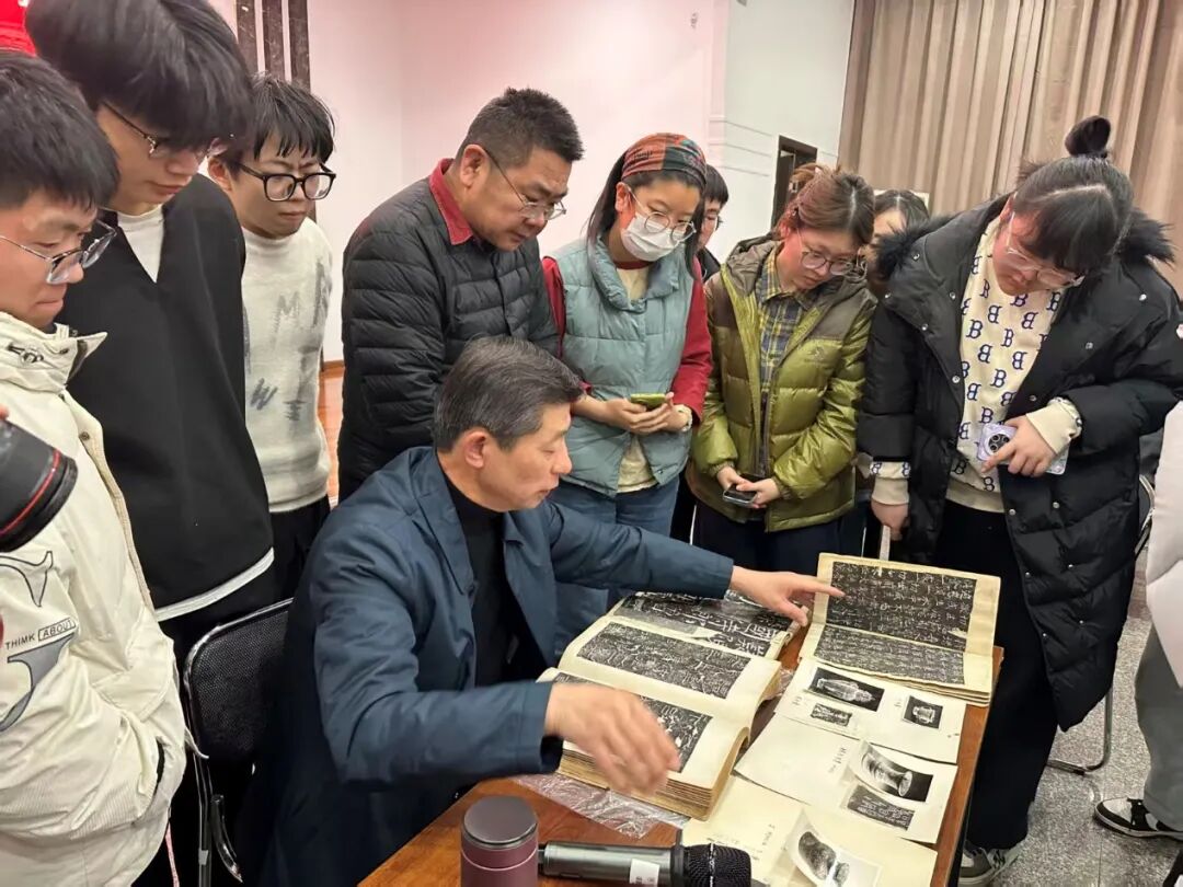 讲座尾声,杨教授以教学实物的形式,向同学们展示了相关拓本。并寄语大家,不仅要埋头写字,还要从从拓本中汲取创作养分,不断提升书写实践能力。整场讲座内容详实、逻辑清晰,兼具历史视野与现实关怀,学术氛围浓厚。此次讲座不仅深化了师生对金石学与书法文化关系的理解,也为今后的学术研究与艺术实践开辟了新的视角与思路。
