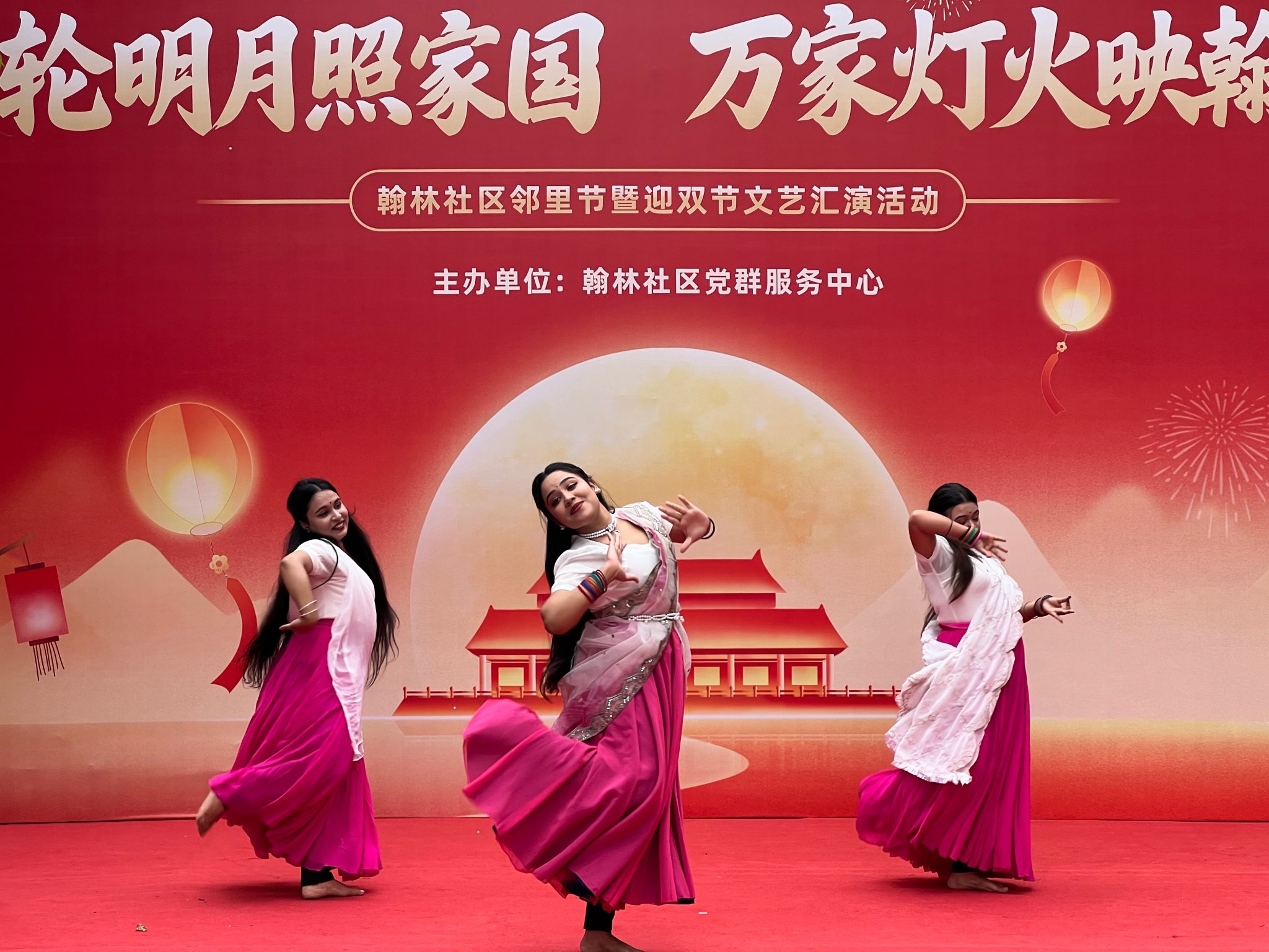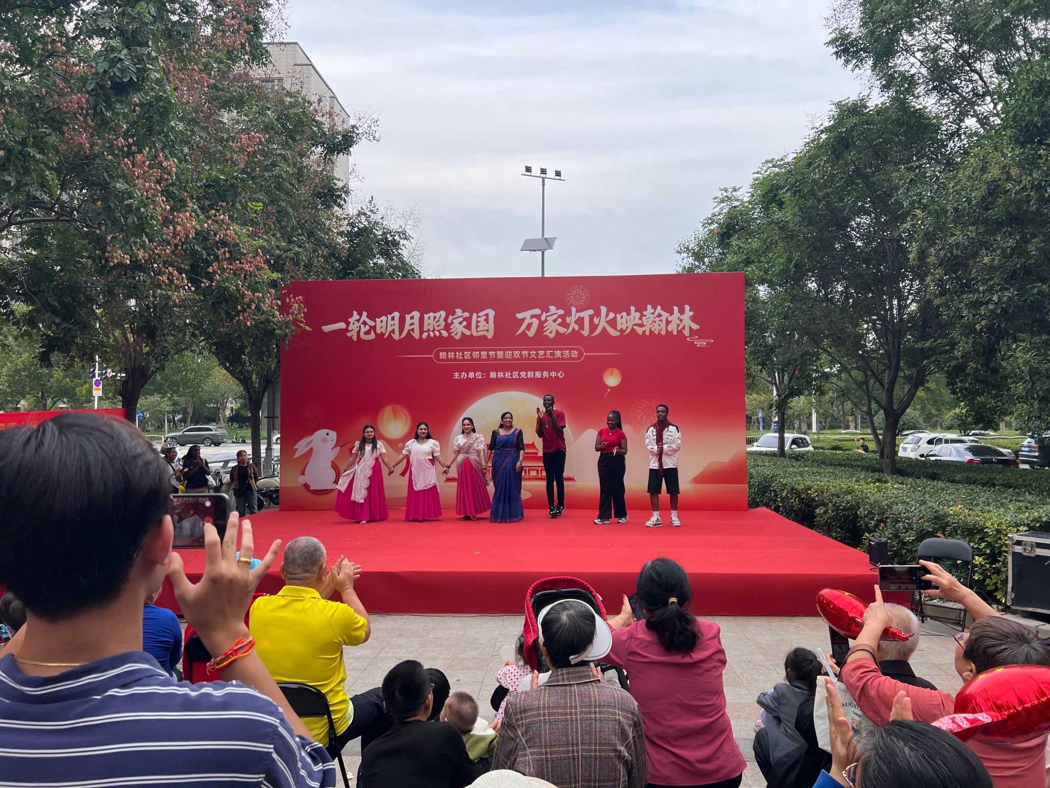 秋光潋滟,和风送爽。9月29日下午,一场由翰林社区党群服务中心主办,汇聚多元文化魅力的“迎双节”文艺汇演隆重上演。翰林社区内掌声雷动,洋溢着欢腾与热烈的节日气氛,我院国际学生以极具感染力的艺术表演,成为整场文艺汇演中最璀璨夺目的焦点。他们用舞步与歌声,在社区舞台之上绘就了一幅绚丽多彩的文明交流画卷。