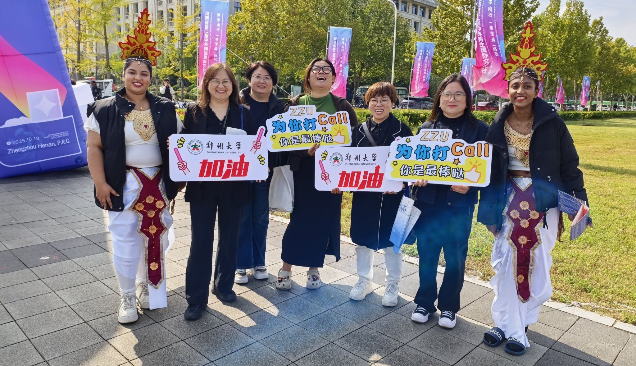金秋送爽,丹桂飘香。近日,“‘豫’你同行,一带繁花一路歌”河南省第二届中外师生国际文化节在华北水利水电大学隆重举行。本届国际文化节汇聚了来自河南省73所高校的2100余名中外师生代表。我院院长麻哲、语言文化教育办公室负责人、学生工作办公室辅导员以及来自格鲁吉亚、津巴布韦、孟加拉国和越南的中外师生70余人代表郑州大学参与了这一文化盛宴。