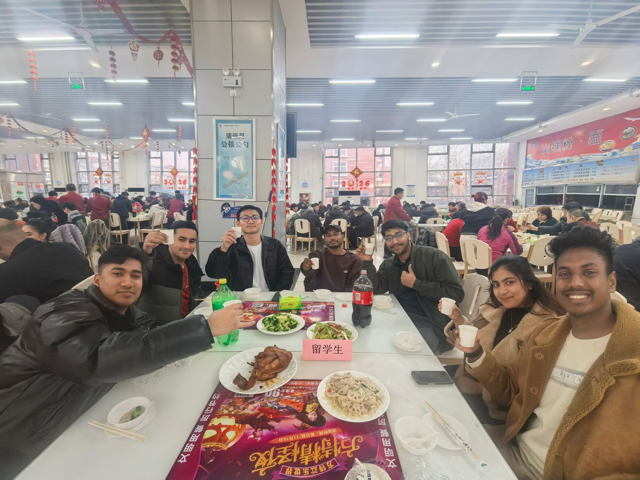 当晚 17 时 30 分左右,王利国代表学校参加了在主校区松园二楼餐厅举办的除夕聚餐。我院22 名寒假留校国际学生代表受邀欢聚一堂,共庆佳节。餐桌上年味十足,欢声笑语不断,同学们沉浸式体验中国除夕团圆习俗,在温馨的氛围中感受家的温暖。席间,国际学生们满怀感恩,纷纷为郑州大学、学校领导及值班人员送上衷心的祝福,用真诚的话语表达了感激之情,也传递出对中国新年的美好期许。