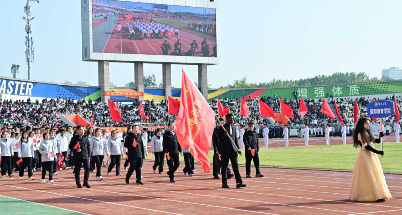 近日,郑州大学2026年阳光体育运动会在主校区本源体育场隆重开幕。我院国际学生满怀热忱、全力以赴,在团体展示与比赛现场奋勇拼搏,既展现出昂扬向上的精神面貌,又斩获多项亮眼成绩,用青春与活力为本次活动写下了浓墨重彩的一笔。