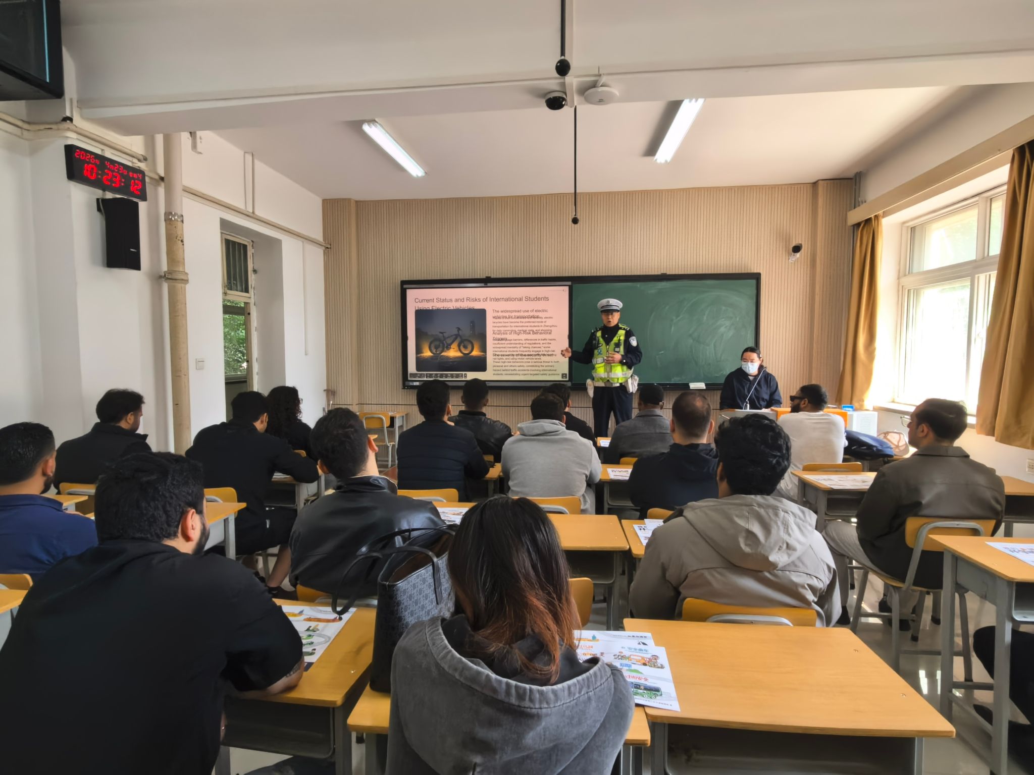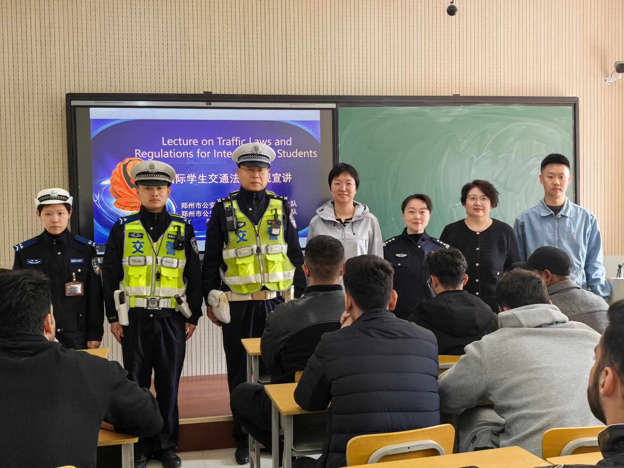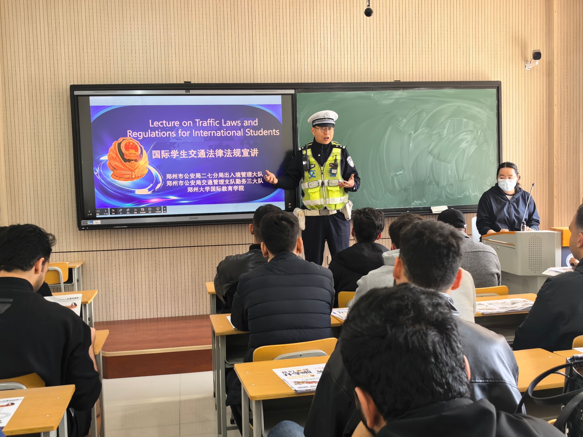 为进一步增强国际学生法治观念,帮助同学们更好地理解中国法律法规及相关规章制度,切实提升大家知法守法能力,4月23日上午,我院在郑州大学东校区成功举办国际学生法治与安全主题宣讲活动。本次活动特邀郑州市公安局二七分局出入境管理大队及郑州市公安局交通管理局交警三支队民警现场授课,英文授课医学专业高年级国际本科生、英文授课医学专业国际研究生和主管辅导员参加了相关活动。