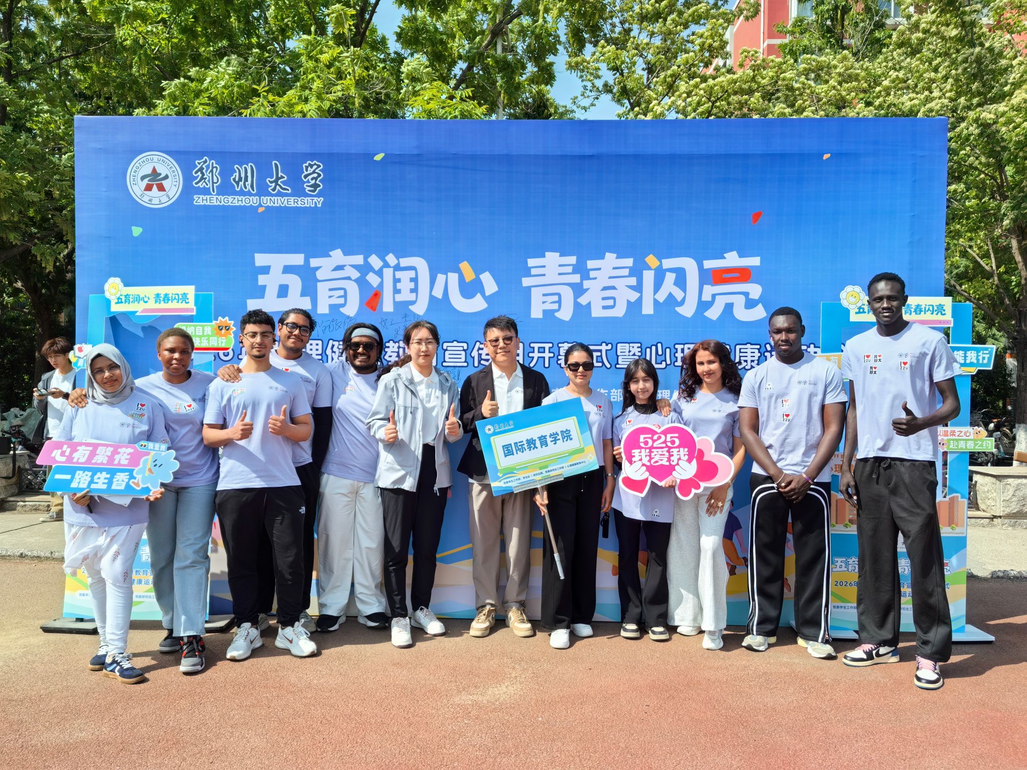 五育润心,青春逐光!4月24日下午,郑州大学2026年“5·25”心理健康教育宣传月开幕式在主校区南操场隆重举行。校党委常委、副校长王海杰出席开幕式,校学生处副处长、心理健康教育中心主任刘慧瀛主持开幕式。我院党总支副书记程果、辅导员及国际学生代表参加了此次活动。