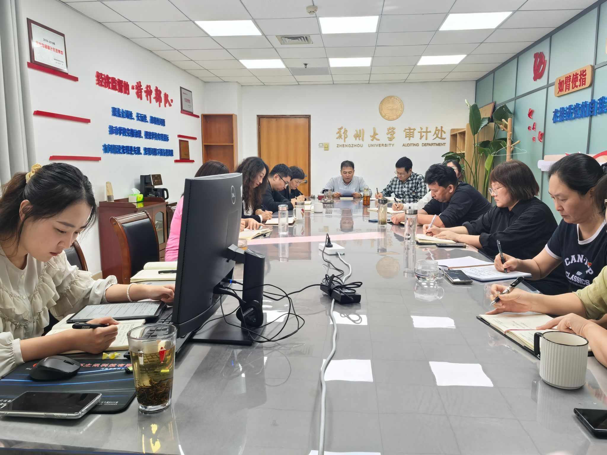 全体人员围绕主题展开集中学习,学习内容涵盖国家层面与河南省地方层面的重要制度规范,重点研读了7份制度文件,分别是:《中共中央办公厅 国务院办公厅印发关于建立健全审计查出问题整改长效机制的意见》《财政违法行为处罚处分条例》《审计署关于进一步规范审计移送工作的意见》《中共河南省委办公厅 河南省人民政府办公厅关于进一步加强审计整改工作的意见》《河南省审计厅关于准确划分审计查出问题整改类型的通知》《河南省审计厅审计整改督促检查工作办法》等。