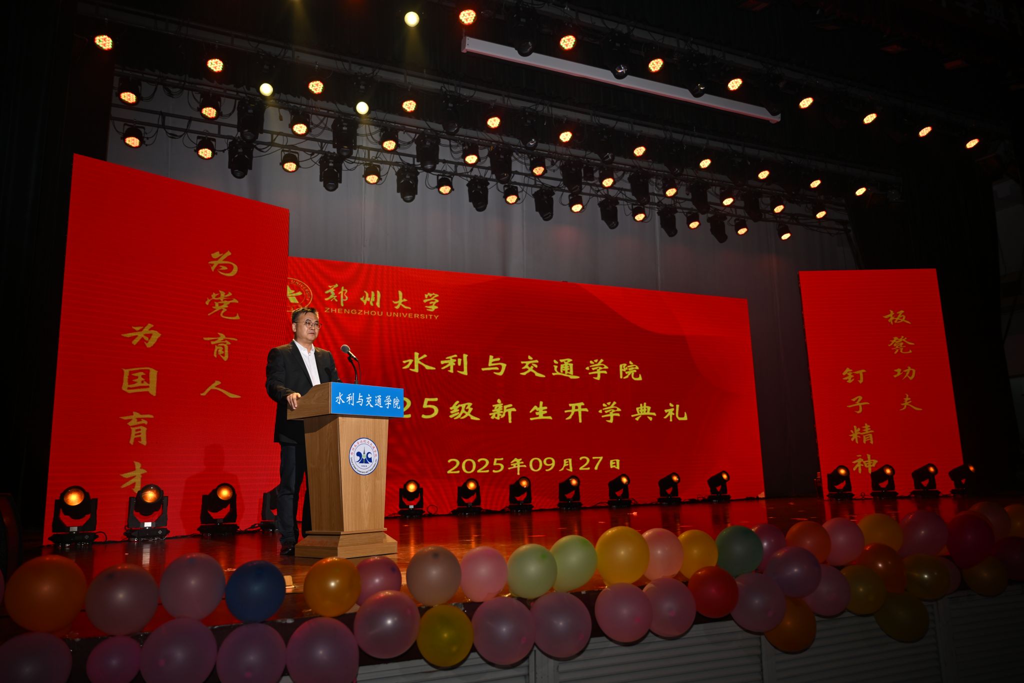 秋风送爽启新程,青春奋进谱华章。9月27日晚,学院2025级新生开学典礼在北校区大礼堂隆重举行。学院党委书记喻先惠,院长郭进军,黄河实验室(郑州大学)执行主任、学院副院长方宏远等学院领导,全体辅导员、2025级班主任、教师代表及2025级全体新生齐聚一堂,共同见证这一重要时刻。典礼由学院党委副书记任怡主持。