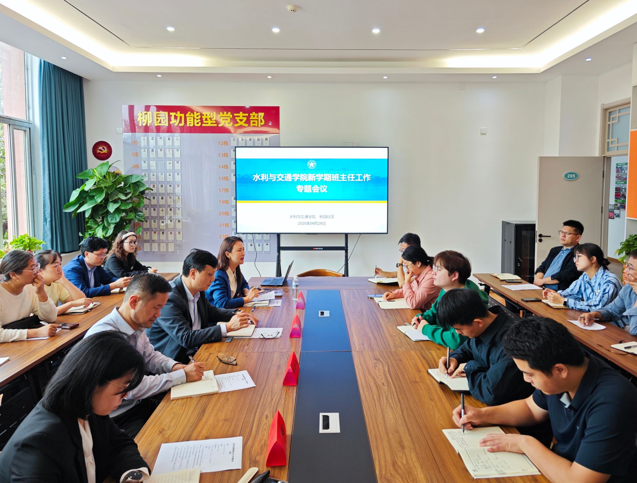 2025年9月28日下午4:00,学院新学期班主任工作专题会议在柳园社区205房间顺利召开。学院党委书记喻先惠、柳园社区主任张朝阳、学院党委副书记任怡、副院长王娟,全体班主任及辅导员共同参会,共商育人良策,共绘成长蓝图。
