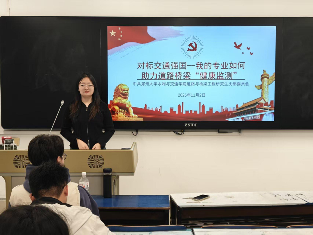 11月上旬,水利与交通学院道路与桥梁研究生支部、水工结构与材料研究生支部等九个研究生党支部,集中开展了系列主题党日活动。各支部紧扣国家战略需求,聚焦智慧交通、智慧水利、智能建造等前沿方向,搭建起党建与科研深度融合的交流平台,引导青年党员将学术追求融入国家发展大局,以科技创新赋能学科高质量发展。