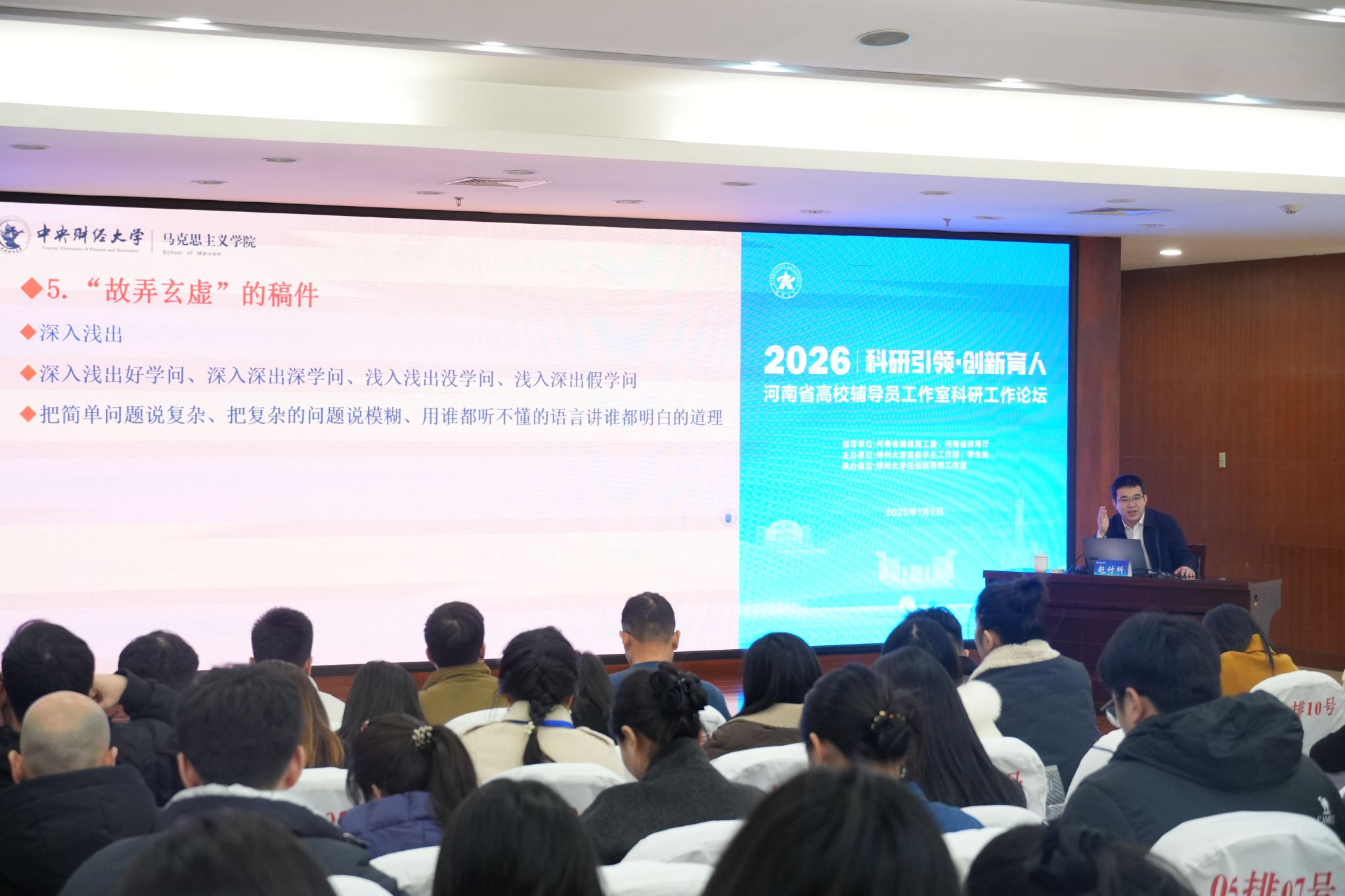 为深入推进河南省高校辅导员队伍专业化、职业化、专家化建设,破解思政工作科研赋能难题,搭建全省辅导员科研育人交流共享平台,2026年1月9日,由河南省委教育工委、河南省教育厅指导,郑州大学党委学生工作部、学生处主办,郑州大学任怡辅导员工作室承办的“科研引领·创新育人”河南省高校辅导员工作室科研工作交流活动在我校成功举办。全省30个省级辅导员工作室骨干成员、校级辅导员工作室全体成员及辅导员代表齐聚一堂,共探育人新路径。