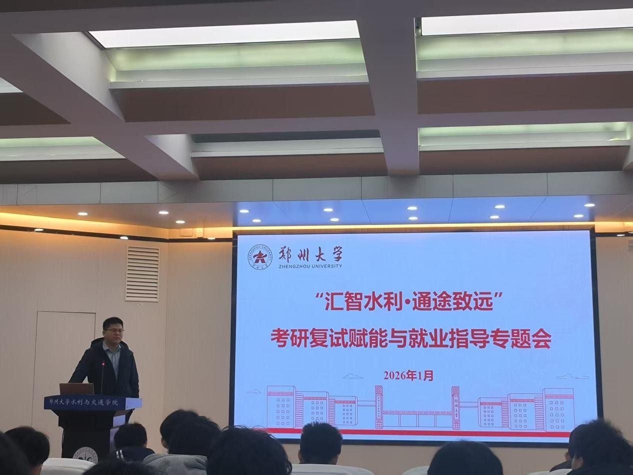 为切实帮助2022级本科生精准备战考研复试、全面提升就业竞争力,破解同学们在升学与就业过程中的困惑,1月19日—20日,水利与交通学院开展“汇智水利·通途致远——考研复试赋能与就业指导”专题会。各班班主任与辅导员紧密联动、协同发力,为2022级全体本科生送上了一堂兼具针对性与实用性的“成长赋能课”。