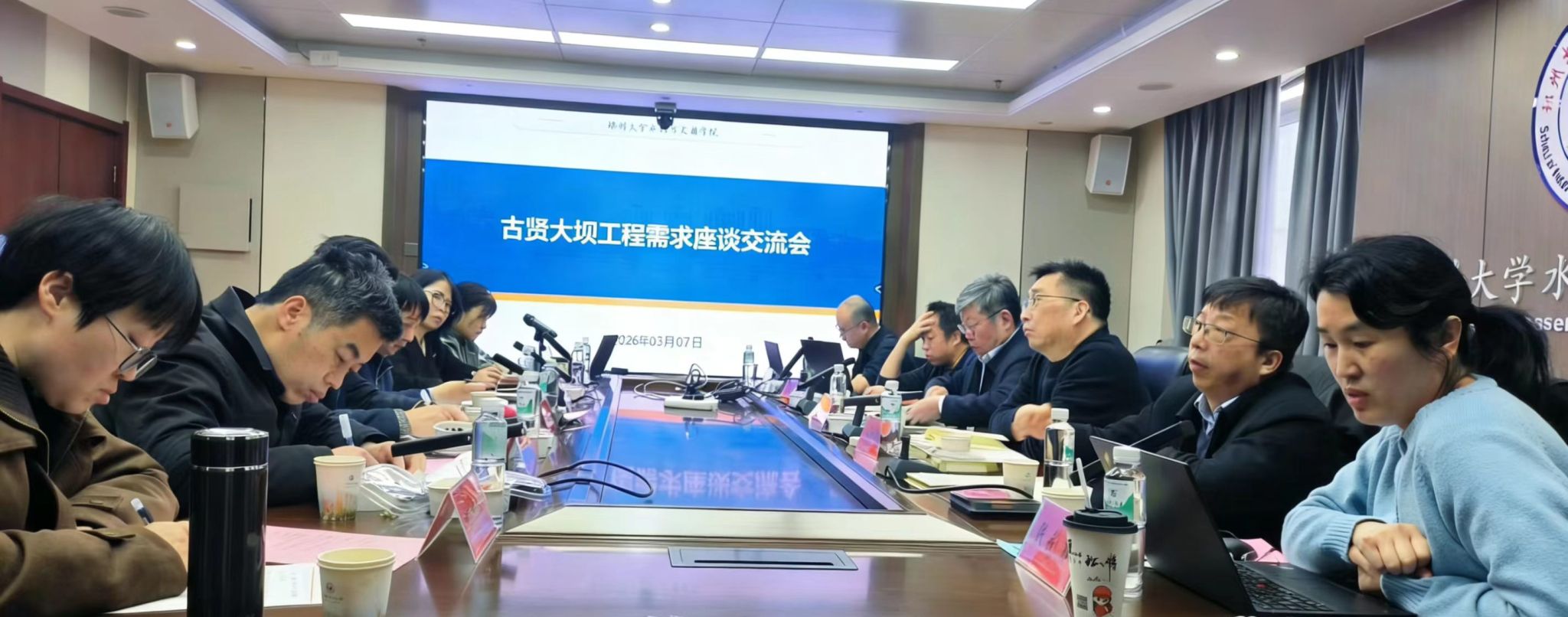 2026年3月7日,古贤大坝工程需求座谈交流会在郑州大学水利与交通学院顺利召开。来自清华大学水圈科学与水利工程全国重点实验室、黄河古贤水利枢纽有限公司、黄河勘测规划设计研究院有限公司、华北水利水电大学水利学院及郑州大学水利与交通学院的相关领导、专家学者和技术骨干齐聚一堂,围绕古贤大坝工程建设中的关键技术需求、科研攻关方向及产学研合作等内容进行了深入交流与研讨。本次座谈会由郑州大学水利与交通学院副院长王娟教授主持。