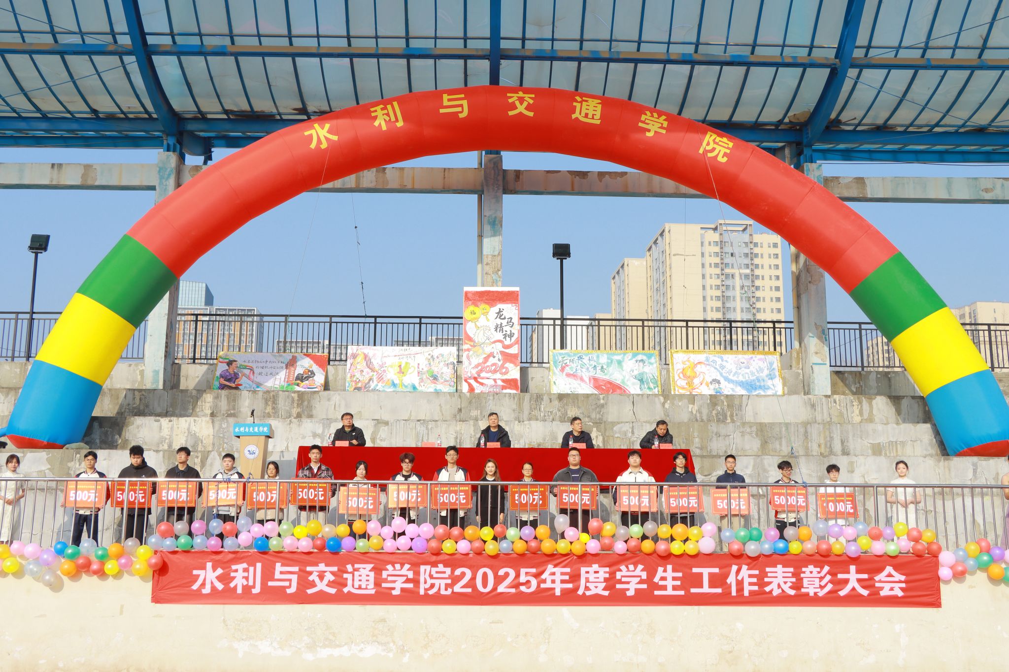 上午8时30分,大会在庄严的国歌声中拉开序幕。副院长王慧亮首先宣读了《水利与交通学院关于对2025年度学生工作先进集体和先进个人进行表彰的决定》。表彰大会以“板凳功夫和钉子精神”为主线,集中展示了学院在人才培养、社会实践和创新创业等方面的丰硕成果。学院坚持“成人、成才、成就”的教育理念,注重学生综合素质的全面提升。会上,在学科竞赛、专利发明、外语学习、本科生高水平论文、研究生高水平成果以及省级以上荣誉等方面取得突出成绩的先进集体和个人依次上台领奖。学院党委书记喻先惠,党委副书记任怡,副院长张鹏、王慧亮,工会主席张天航等分别为获奖学生颁发奖金和荣誉证书。