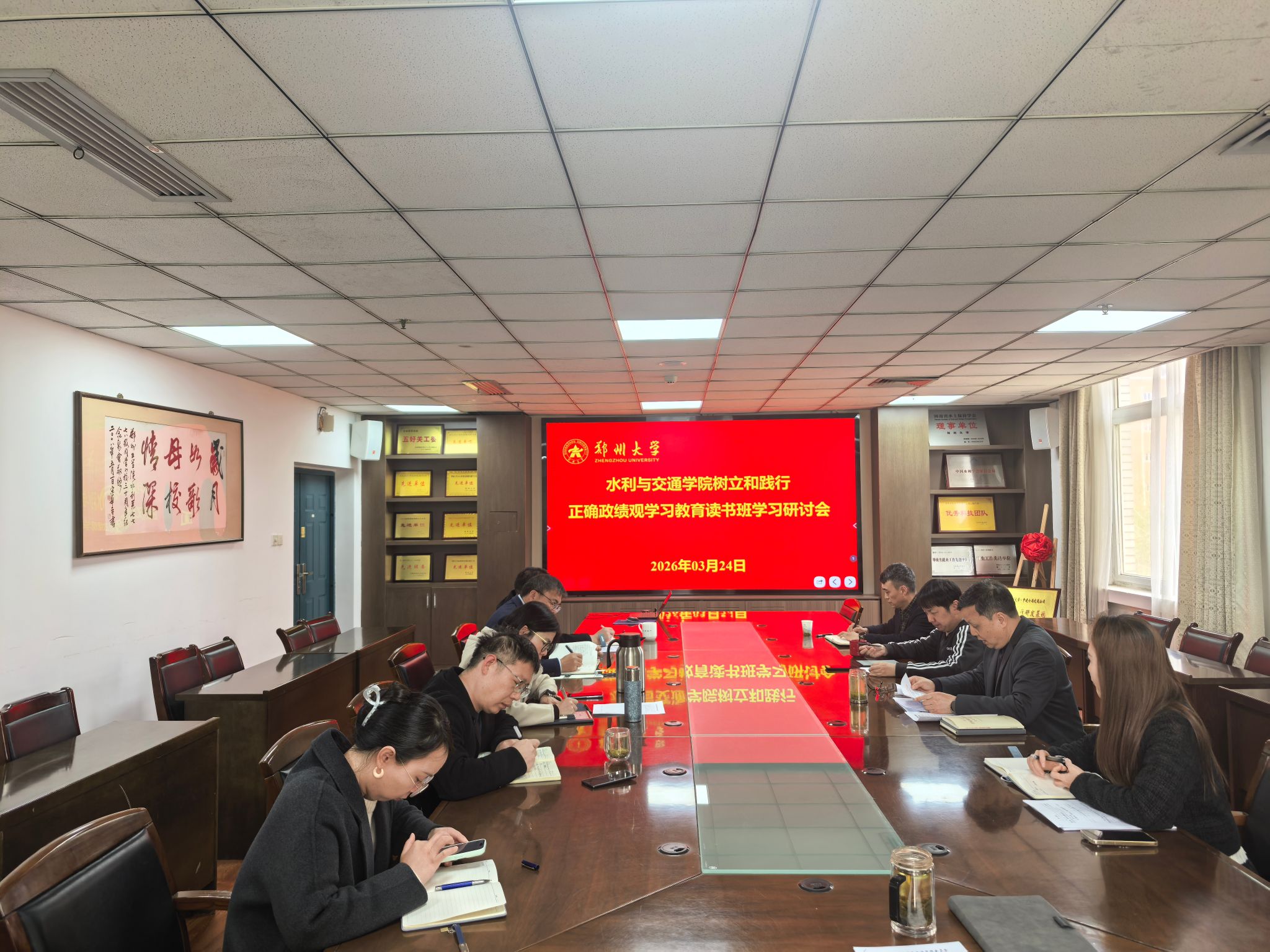 3月24日下午,学院树立和践行正确政绩观学习教育读书班举行集中研讨交流。学院全体班子成员作交流发言,党委书记喻先惠主持会议。