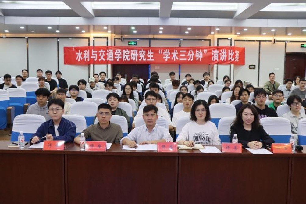 2026年4月20日,水利与交通学院第三届研究生“学术三分钟”演讲比赛在环保馆201报告厅圆满落幕。活动以“以赛促学、以赛促研、以赛赋能”为宗旨,为全院研究生搭建了高水平的学术交流平台,吸引了各年级硕士生、博士生踊跃参与。选手们用凝练的实验室语言,讲述了深度的科研故事。