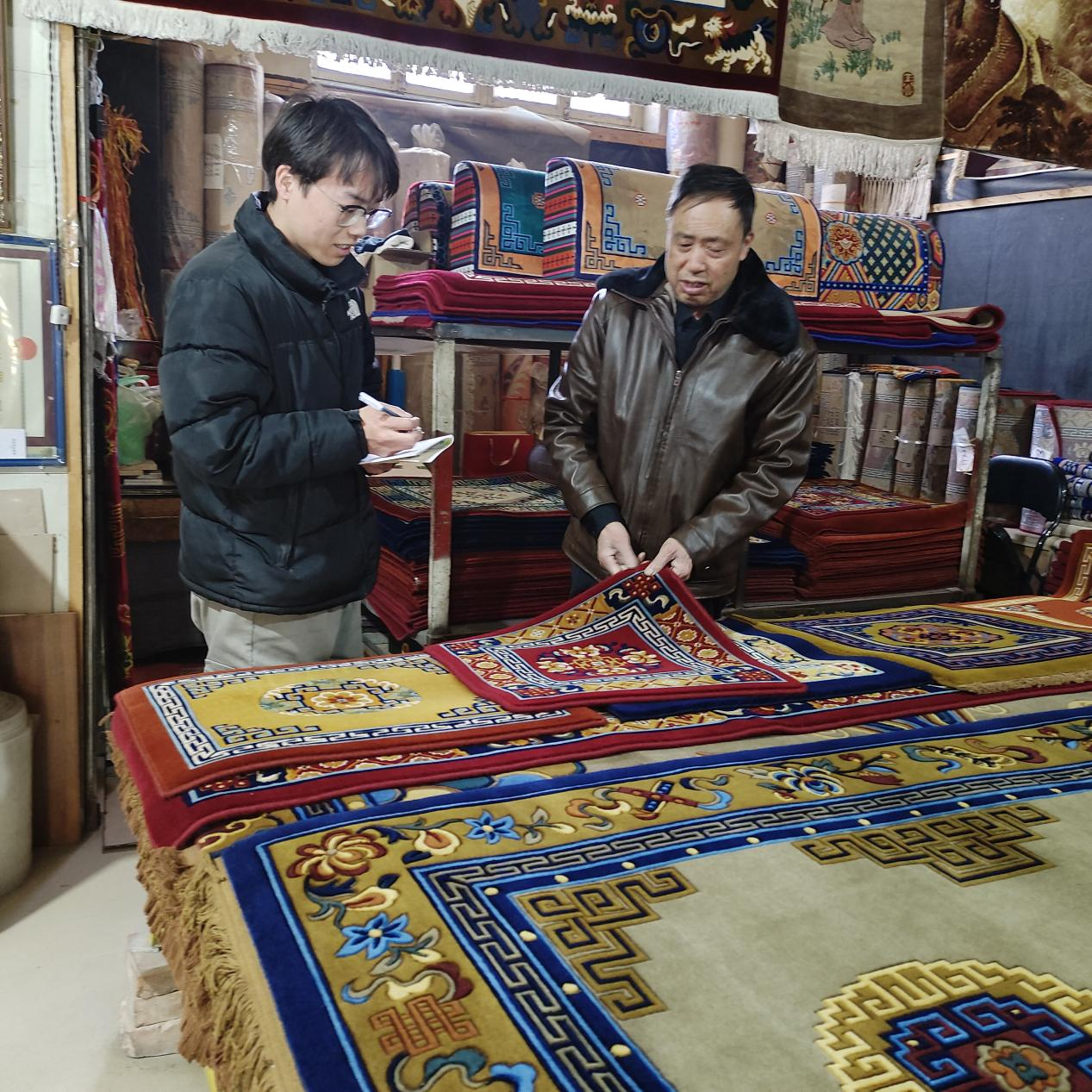 “只要你来学,我们免费教,还包吃住,就想把加牙藏毯的手艺好好传下去。”电气与信息工程学院海生金同学在青海省西宁市乡村调研时,从坚守织毯的手艺人口中听到了这样朴实的话语。2006年,加牙藏毯技艺被列入国家级非物质文化遗产名录,彼时村里坚持织毯的手艺人不足十人,这门珍贵的非遗技艺一度面临失传的窘境。寒假期间,海生金围绕加牙藏毯展开深度调研,深入了解藏毯的历史渊源、生产加工流程与产品市场销售情况。调研中他发现,昔日濒临失传的藏毯技艺,如今已成为带动当地民众增收致富的重要抓手,为乡村振兴注入了强劲动力。调研结束后,他从当地带回一张精美藏毯,感慨道:“藏毯的每一根经纬线,交织的不仅是羊毛与色彩,更凝聚着祖辈的智慧、匠人的坚守、创新的勇气,还有这座高原城市走向世界的美好梦想。”