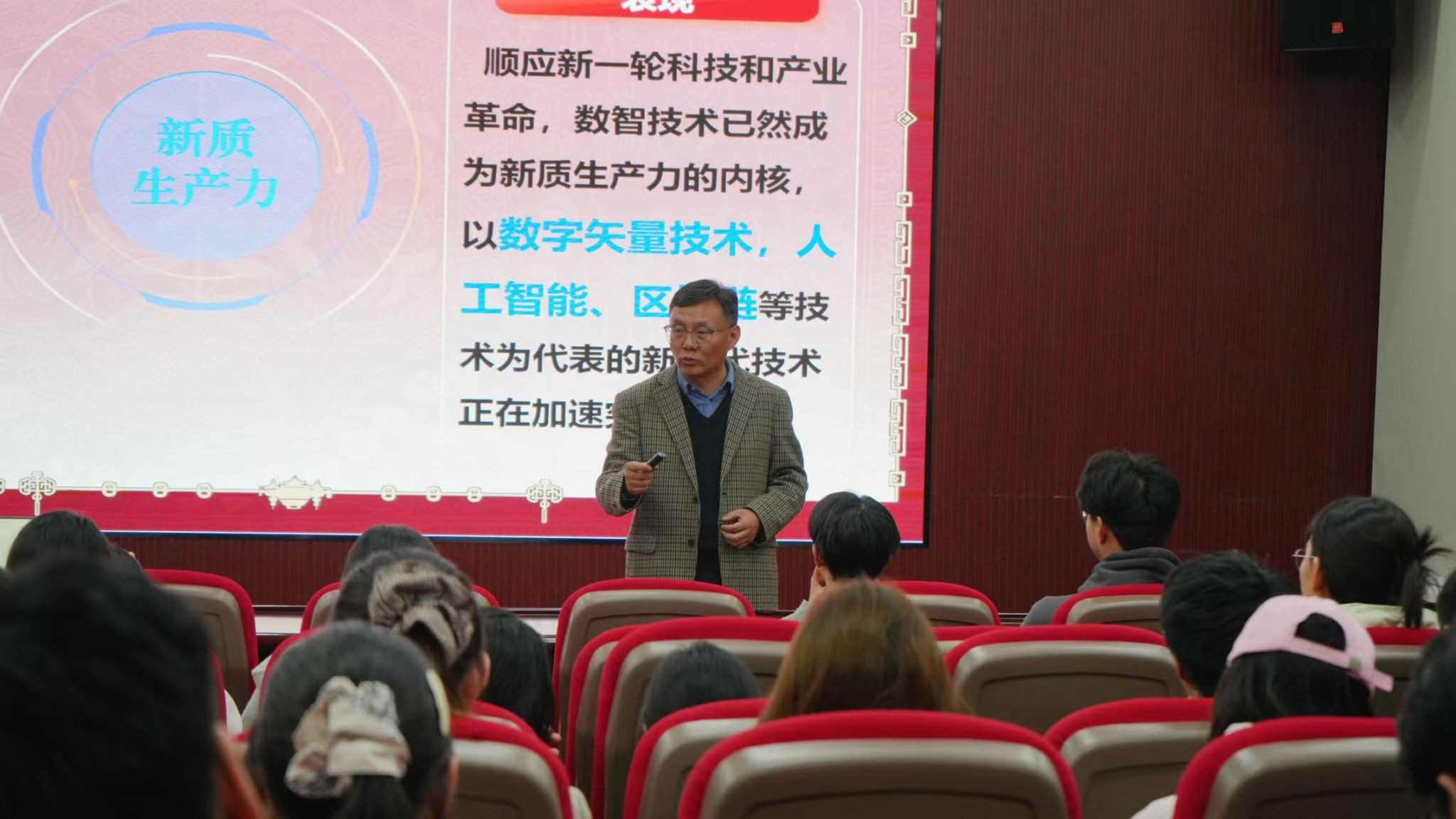 互动环节,天健班学员们结合讲座内容,围绕非遗数智化传承的技术难点、创新创业项目的落地路径、不同领域非遗纹样的创新应用等问题积极提问,周教授逐一耐心解答,给出针对性建议。学员们纷纷表示,此次讲座不仅深化了他们对新质生产力的理解,更激发了传承中华优秀传统文化的责任感与创新热情,未来将把所学所悟运用到学习和实践中,以创新思维探索文化传承与产业发展的融合路径,让传统文化在新时代绽放新光彩。