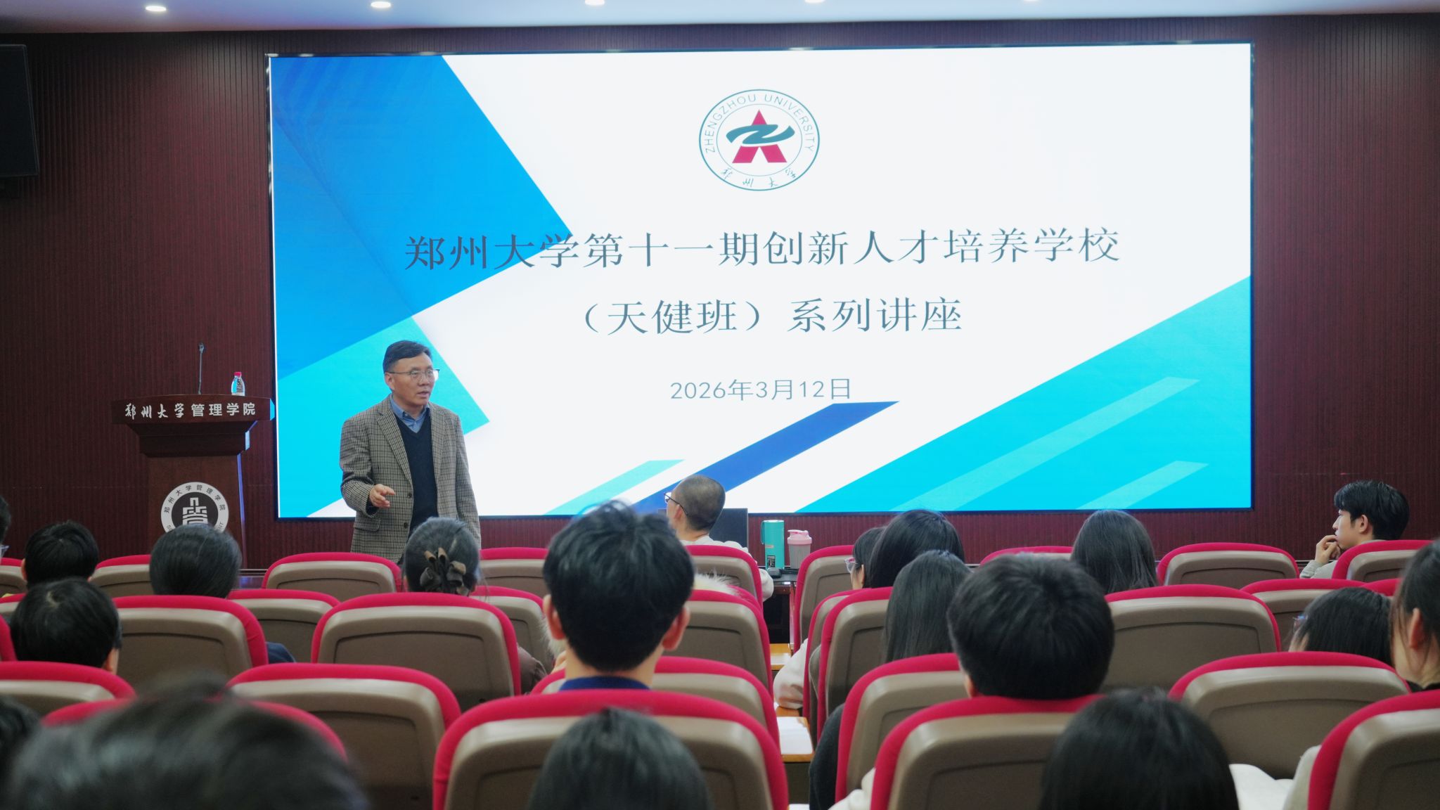为深化创新人才培养,探索中华优秀传统文化创造性转化与创新性发展路径,3月12日,郑州大学创新人才培养学校(天健班)在管理学院308报告厅开展《“挑战杯”金奖的启示——新质生产力赋能非遗纹样数智化传承创新》主题讲座,讲座特邀新闻与传播学院周鹍鹏教授主讲。