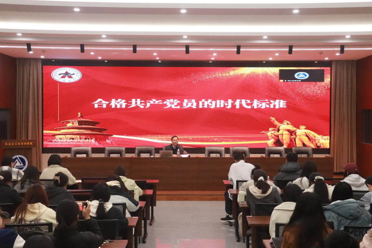 政治与公共管理学院党委副书记、纪委书记陈文新以“合格共产党员的时代标准”为主题,开启业余党校首场讲座。