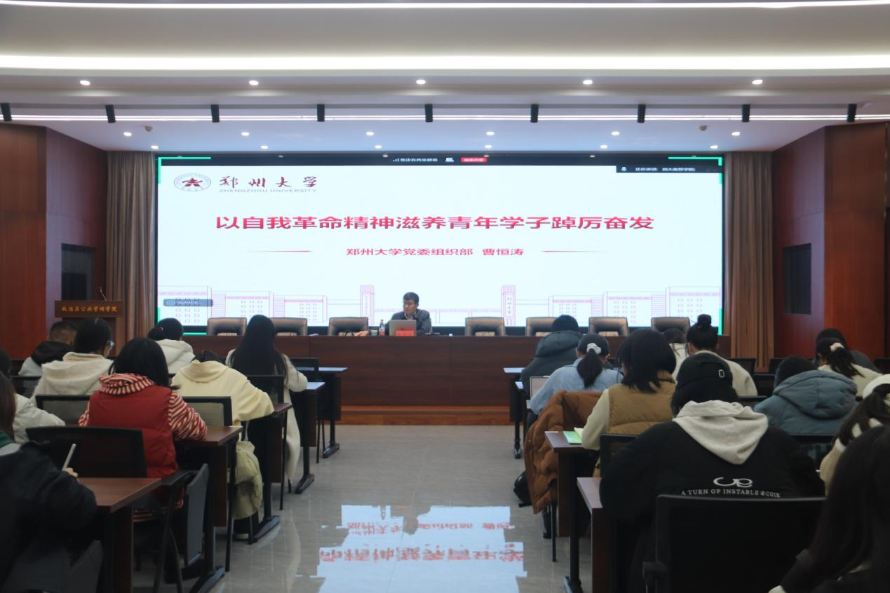 郑州大学党委组织部副部长曹恒涛带来第二讲,主题为“以自我革命精神滋养青年学子踔厉奋发”。