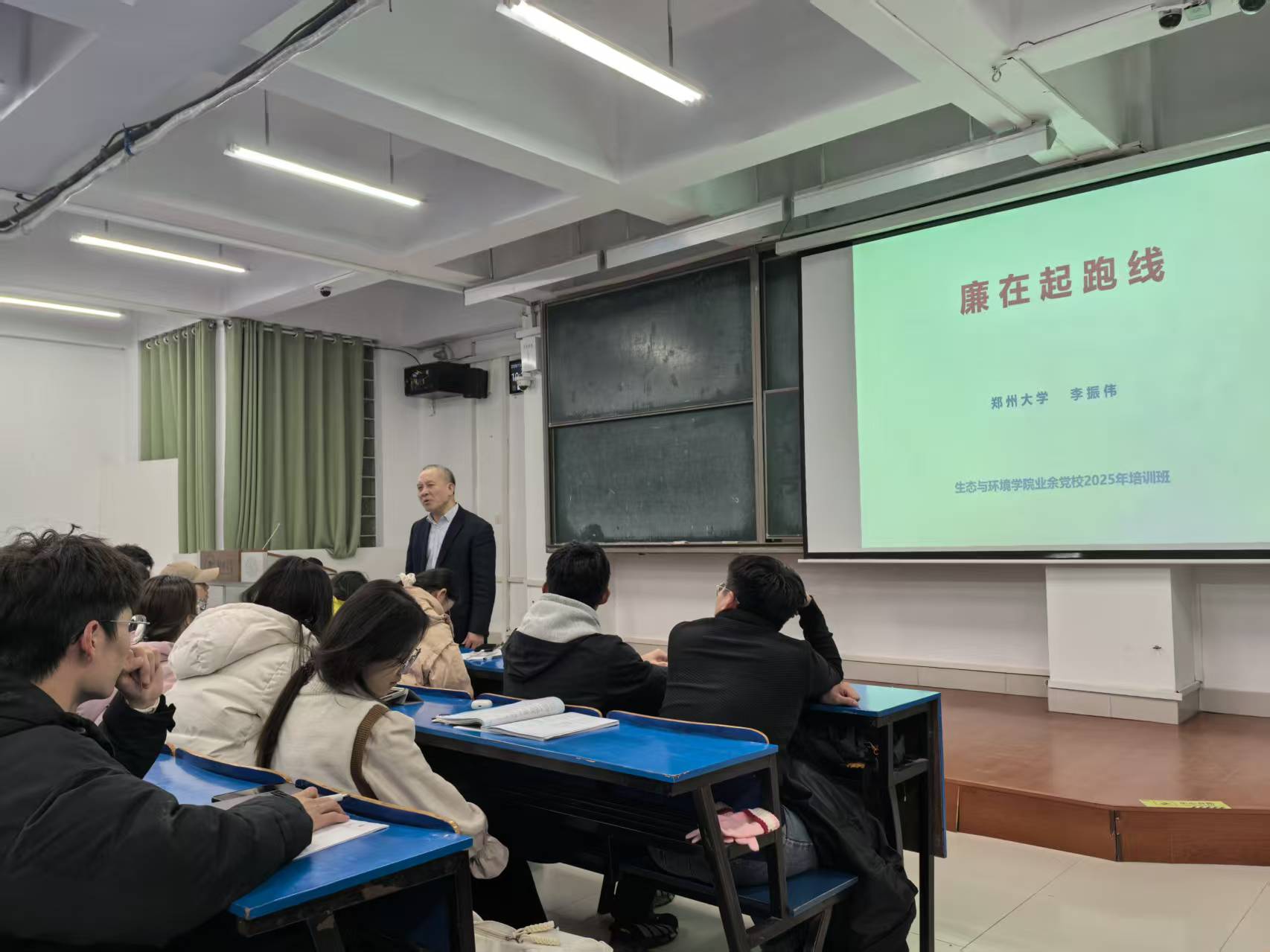 开班仪式后,校纪委李振伟老师以“廉在起跑线”为主题,为同学们进行了本期党课第一讲的专题授课,以“廉在起跑线”为主题。