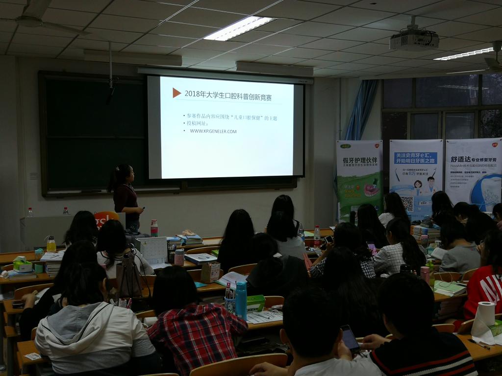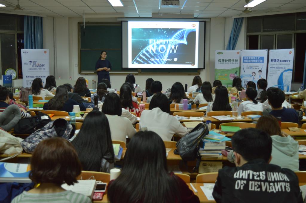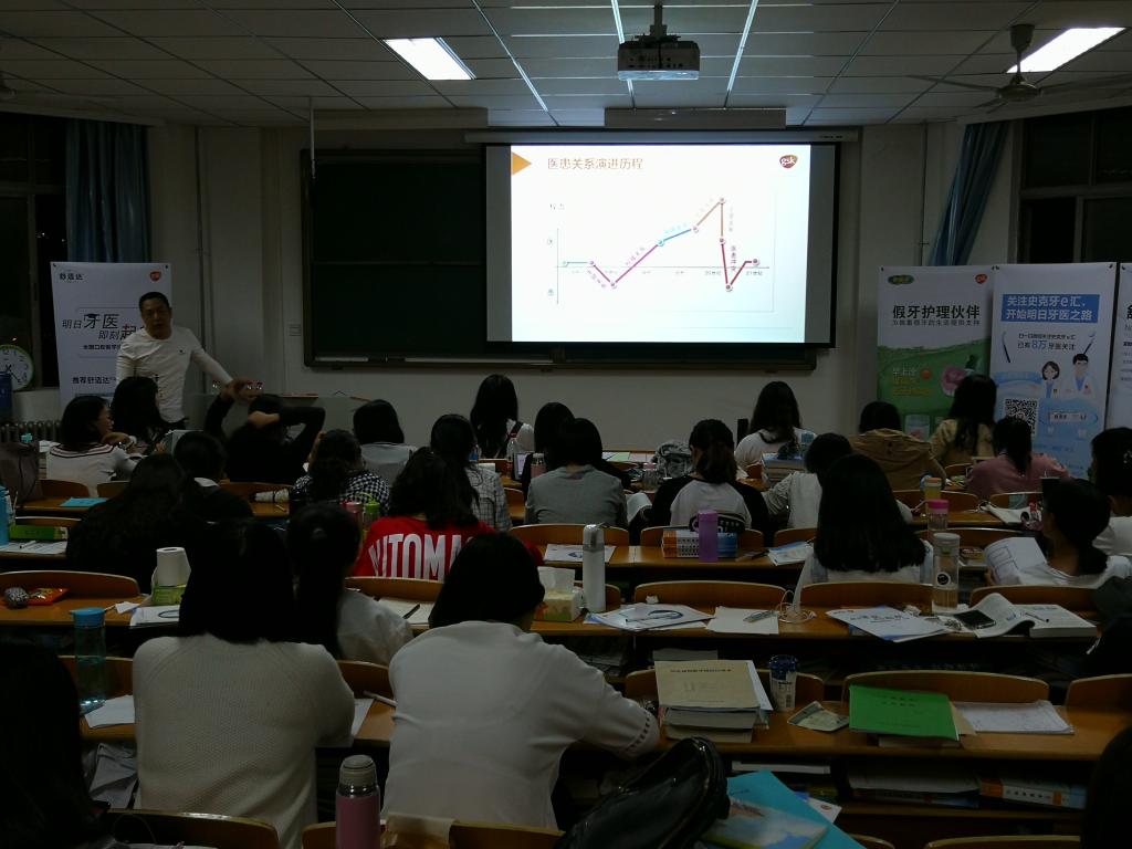 3月28号下午六点半,口腔医学院在郑州大学东校区第三教学楼201教室举行口腔医学生“点亮”活动,中华口腔医学会王欣老师、牙科品牌葛兰素史克代表周媛媛老师、河南省口腔医院牙体牙髓科季旭东老师分别进行授课,2014级全体学生参加,学工办来冲冲老师主持活动。