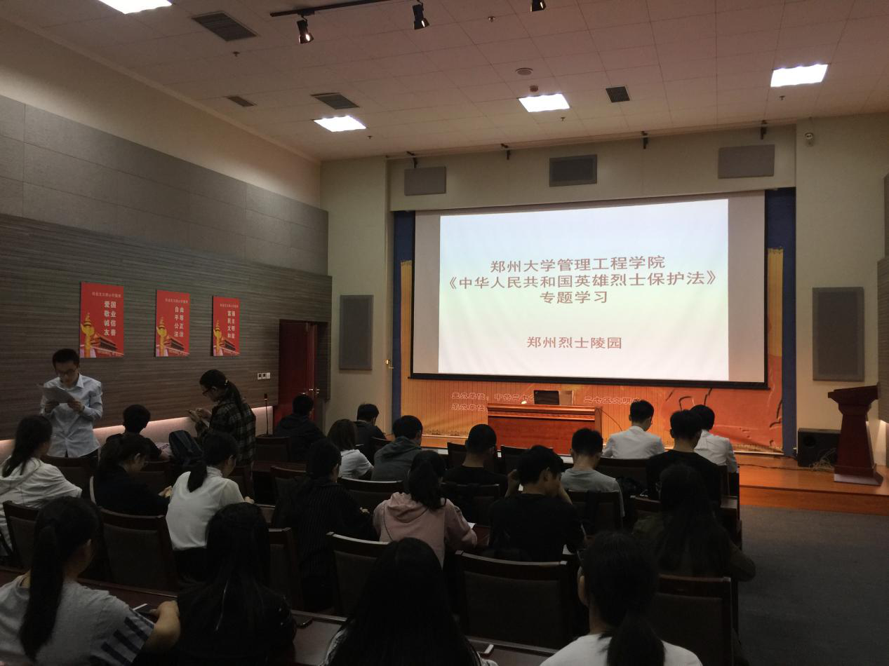 郑州烈士陵园走进郑州大学管理工程学院爱国主义宣讲活动中,宣讲团老师以雷锋精神为题,对雷锋生平和雷锋精神做了细致讲解。在管理工程学院党员之家,学生代表集体收看了纪念马克思诞辰200周年大会盛况,之后又观看了影片《厉害了,我的国》。郑州大学管理工程学院的学生党员、预备党员和入党积极分子来到郑州烈士陵园举行纪念活动。