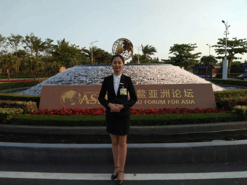 年会期间,她们在博鳌亚洲论坛大酒店前厅部担任翻译一职,翻译了晚宴的菜单以及个别经济分论坛的主持词。现场为潘基文、马云等国内外知名人物面对面提供志愿服务。她们不仅展现了丰富的专业知识,过硬的英语本领,更体现了郑大学子的综合素质。工作表现得到了中外与会领导、嘉宾和各界媒体的好评,并获得了2018年博鳌亚洲论坛优秀服务奖。