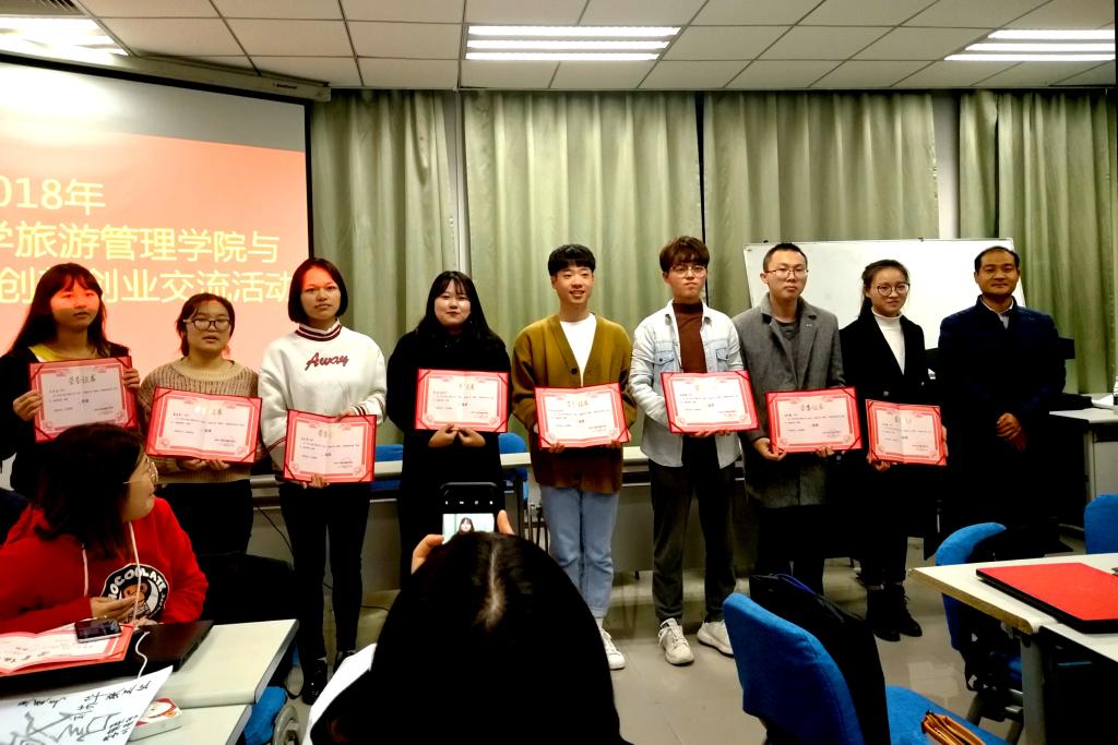 在交流环节,7位东新大学学生和2位旅游管理学院学生分别进行了创新创业项目展示。随后,中韩同学分成六组,针对韩国人或在华韩国人选定的创业项目进行了讨论,并依次上台进行交流,现场气氛热烈。经过在场老师对各小组的评议,分别评选出一二三等奖。朴大勋教授给优秀获奖队伍颁发了证书,朱美光对各小组项目做了现场点评。