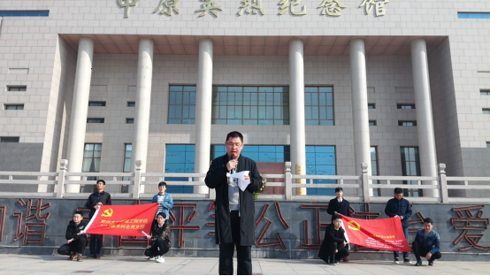 春暖花开,万物复苏,党支部于上午9.00齐聚于烈士陵园。活动伊始,同学们在中原英烈纪念馆前唱国歌、重温入党誓词、学习革命先烈的精神,同学们纷纷铭感于心。随后,大家依次参观了烈士事迹陈列馆、国防园、鸿昌亭、雪枫亭、靖宇亭、焕先亭、吉鸿昌墓、王运芬墓、嵇文甫墓、贾心斋墓、河南公安英烈纪念墙、解放郑州纪念碑、雷锋像等代表性建筑。每到一处,便能听到同学们对革命先烈发自肺腑的赞美之词,感受到同学们对革命先贤们深深的敬仰之意。随之,老师向同学们介绍了河南抗战史、郑州抗战史,饱含深情的讲述让同学们深深体会到了革命先烈的抗战热情和无畏的决心。而后,老师带领大家参观了人民英雄纪念碑,同学们被现场庄重肃穆的气氛所感染,顿时对先烈们肃然起敬,景仰之情油然而生。
