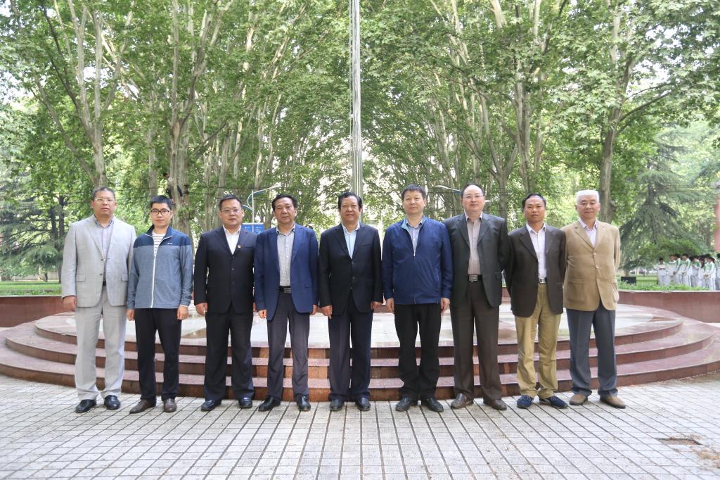郑州大学人民武装部部长刘敏、郑州大学团委副书记王红晓与软件与应用科技学院领导班子合影留念