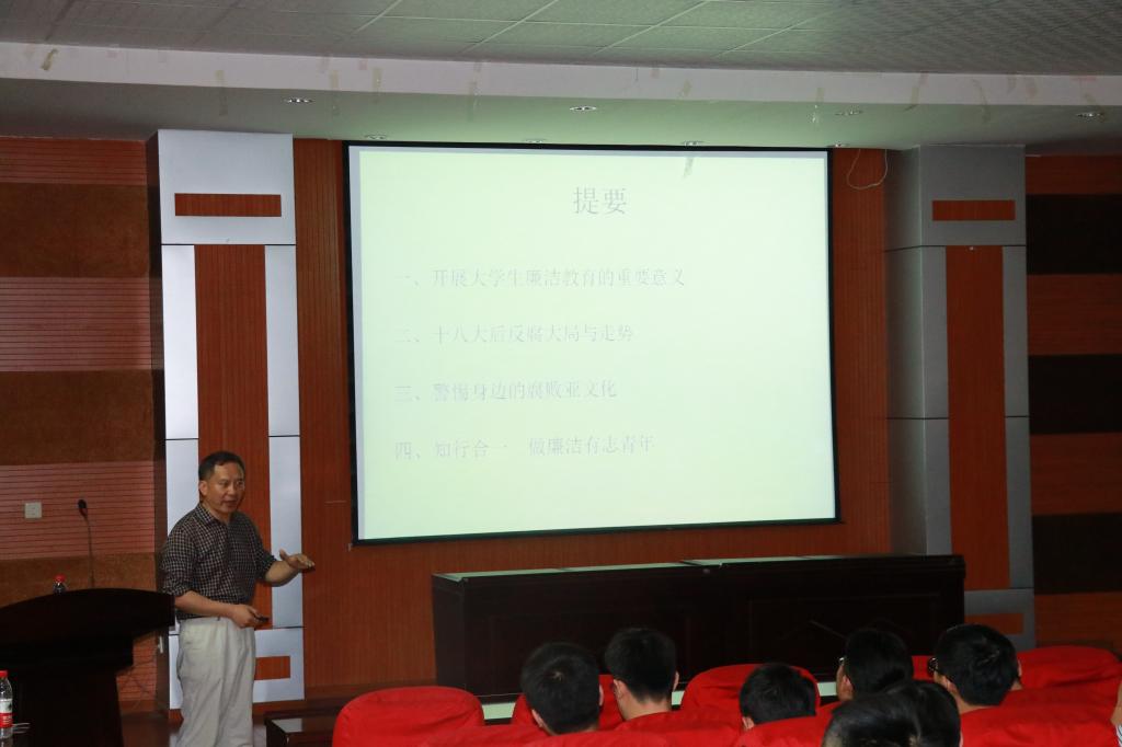 2017年5月9日晚,毕业生廉洁教育最后一课《扣好人生第一粒扣子》在化学馆308开讲。主讲人郑州大学纪委副书记李振伟老师与管理工程学院2017届毕业生就如何在工作岗位中反腐倡廉进行了深刻的探讨,给本届毕业生上了生动的一课。