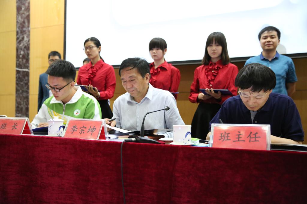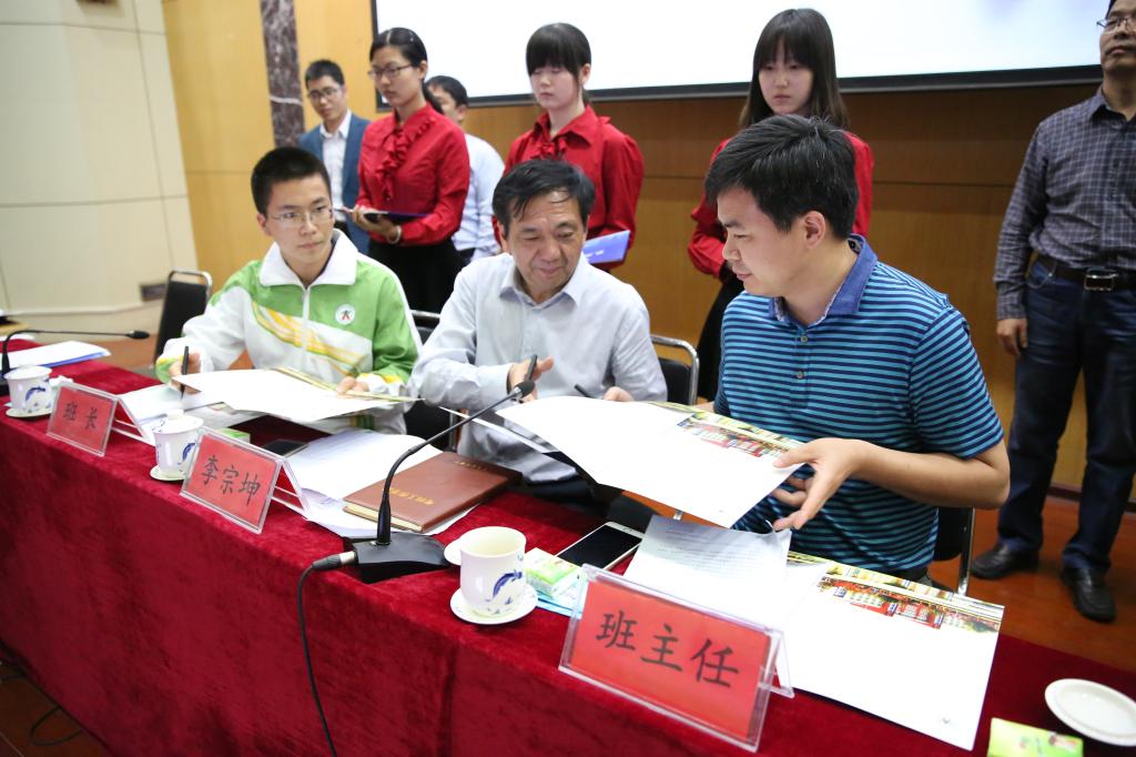 院长李宗坤与优秀班主任代表程相喜及班长签订学风建设目标责任书